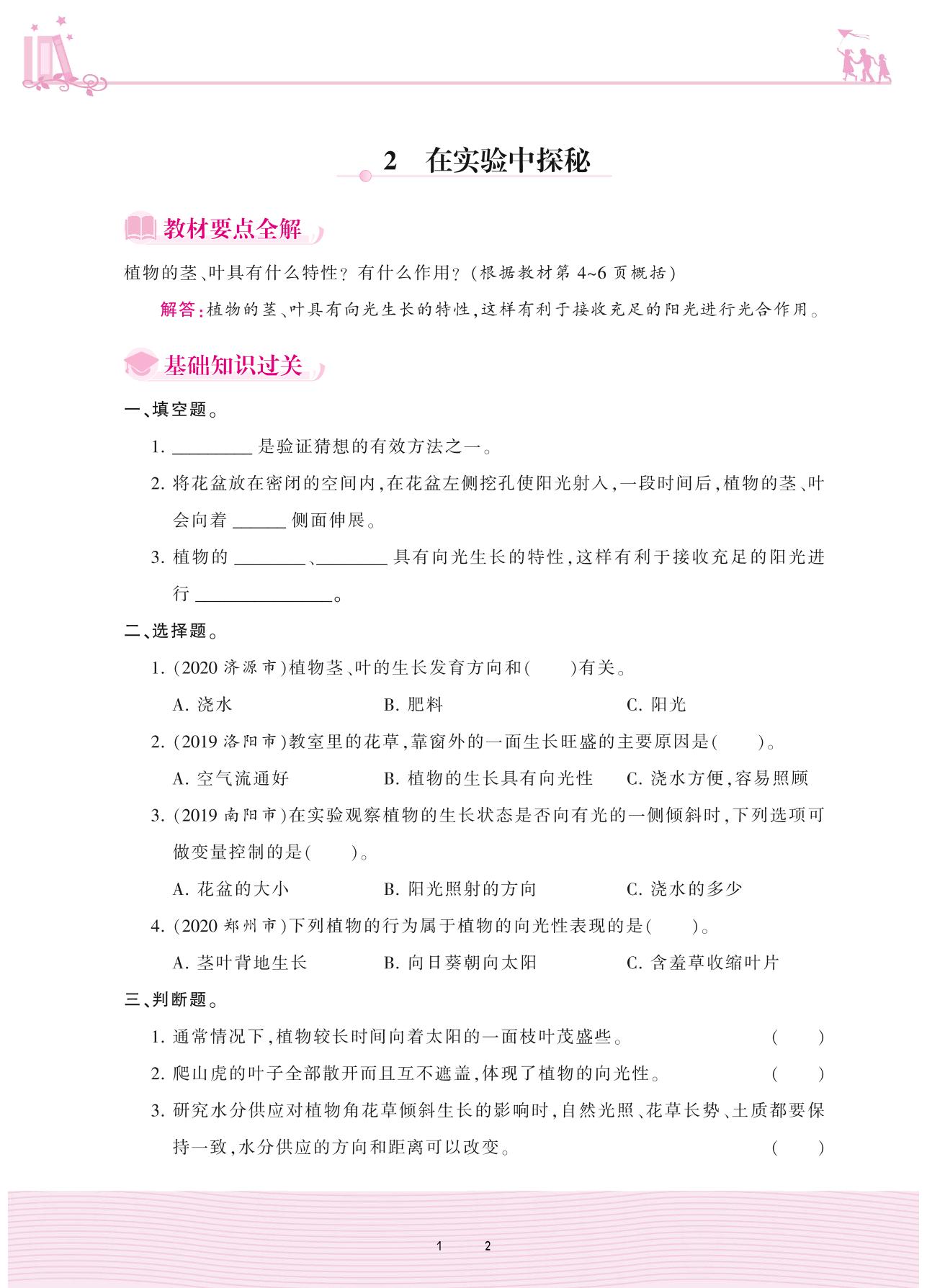 2020上册六年级科学大象版 第一单元 植物角里的科学——2 在实验中探秘