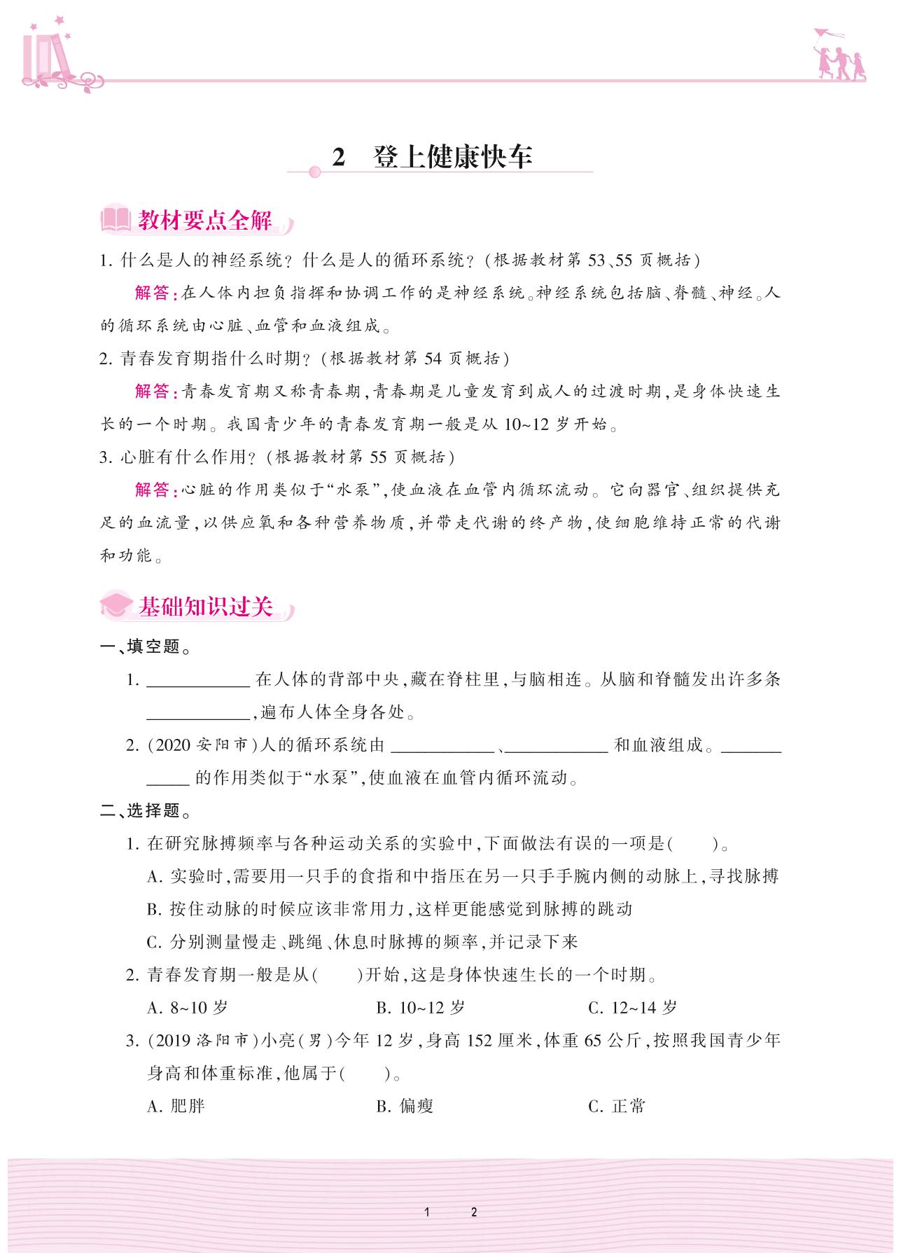 2020上册六年级科学大象版 第四单元 登上健康快车——2 登上健康快车