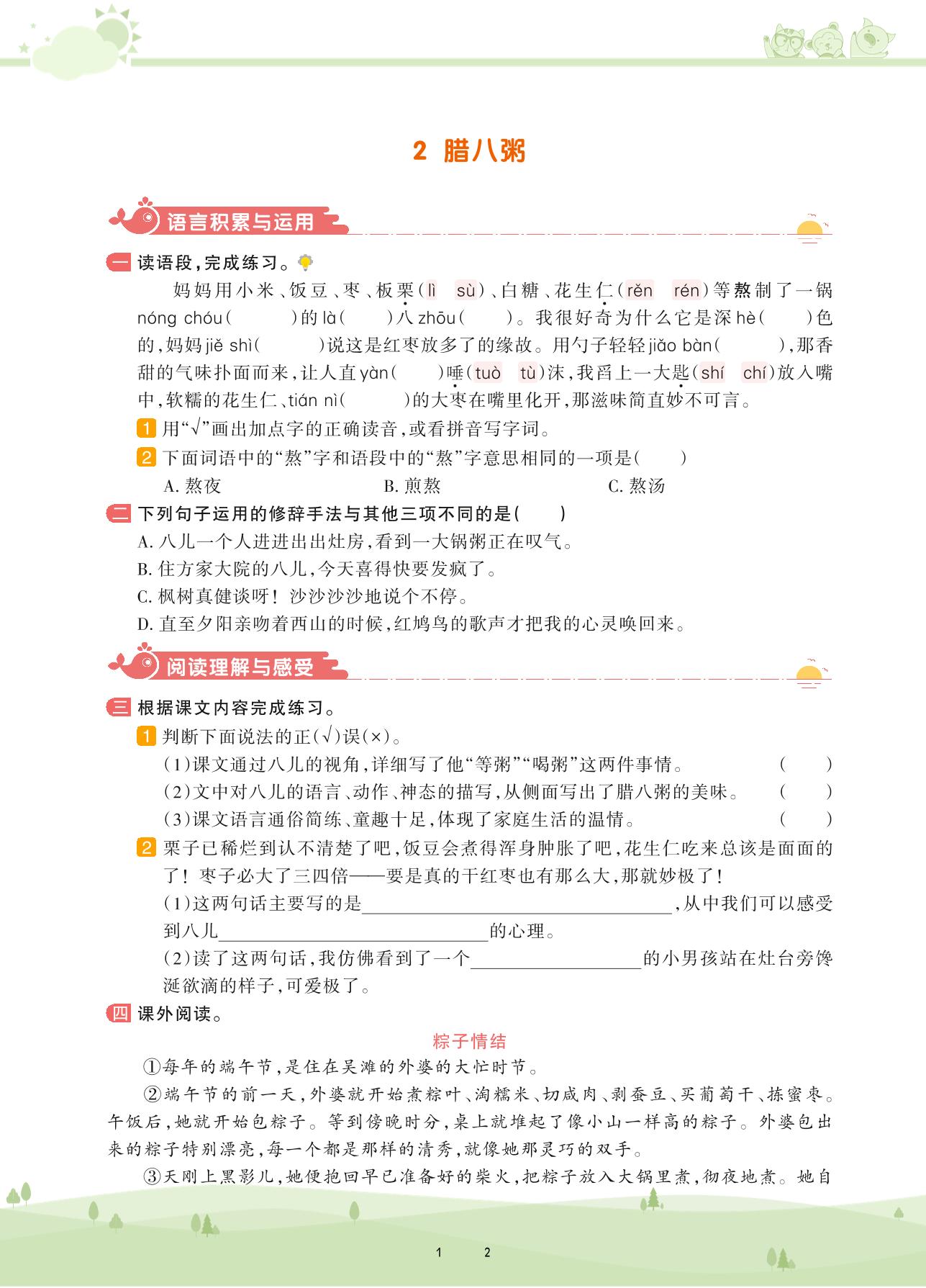 2021下册六年级语文人教版 第一单元——2 腊八粥
