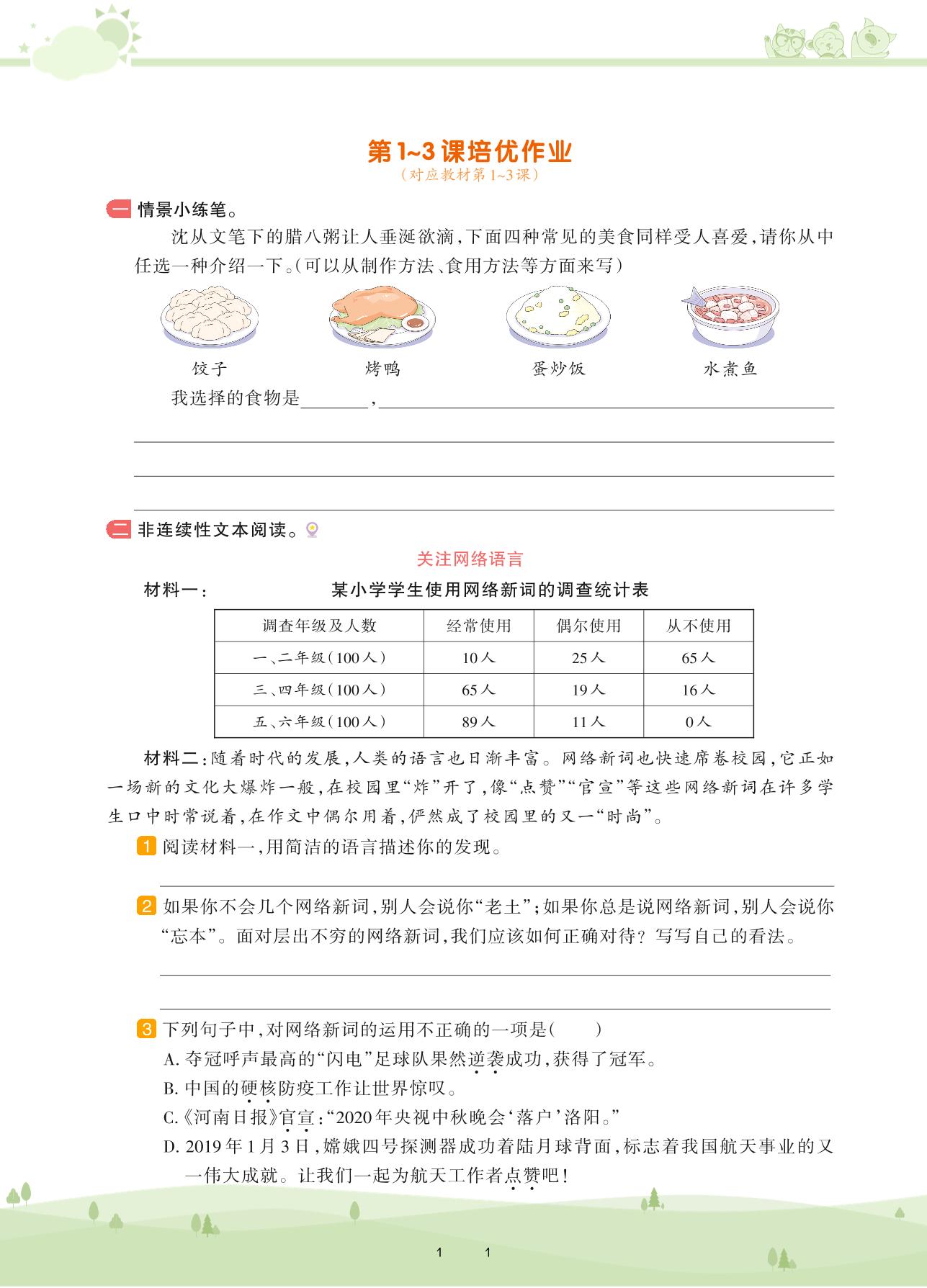 2021下册六年级语文人教版 第一单元——第1~3课培优作业