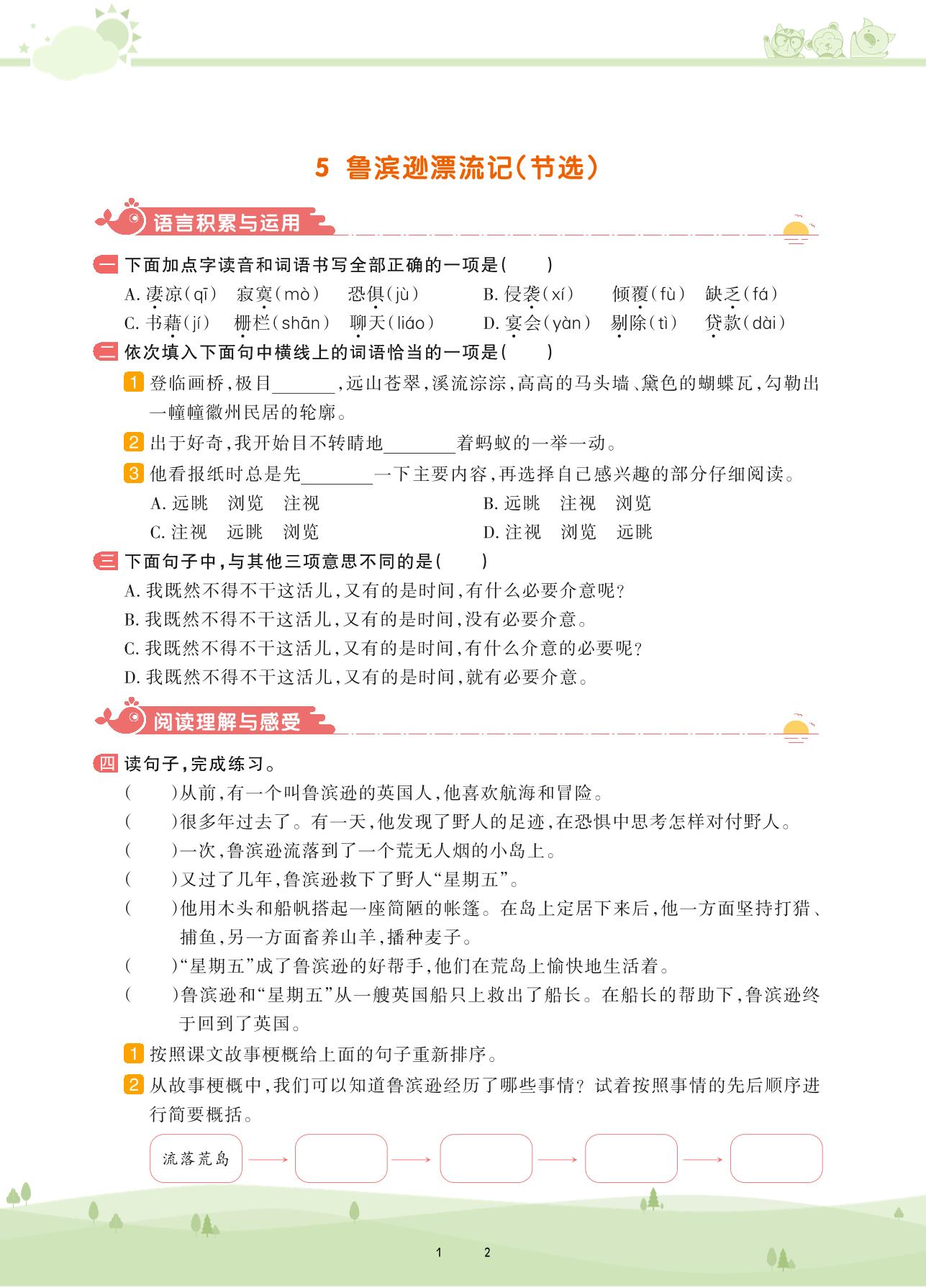 2021下册六年级语文人教版 第二单元——5 鲁滨逊漂流记(节选)