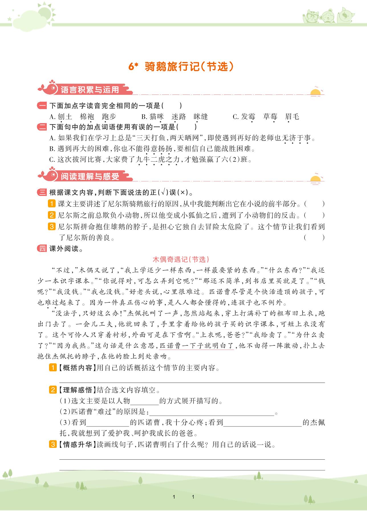 2021下册六年级语文人教版 第二单元——6 骑鹅旅行记(节选)