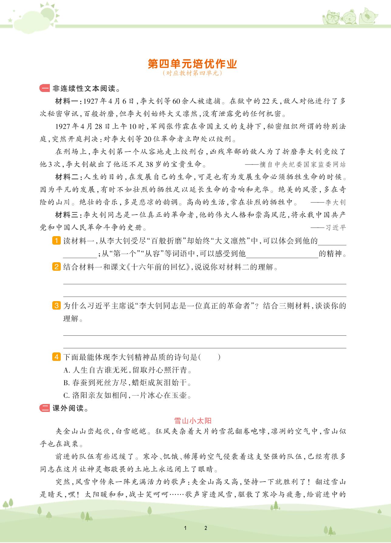 2021下册六年级语文人教版 第四单元——第四单元培优作业