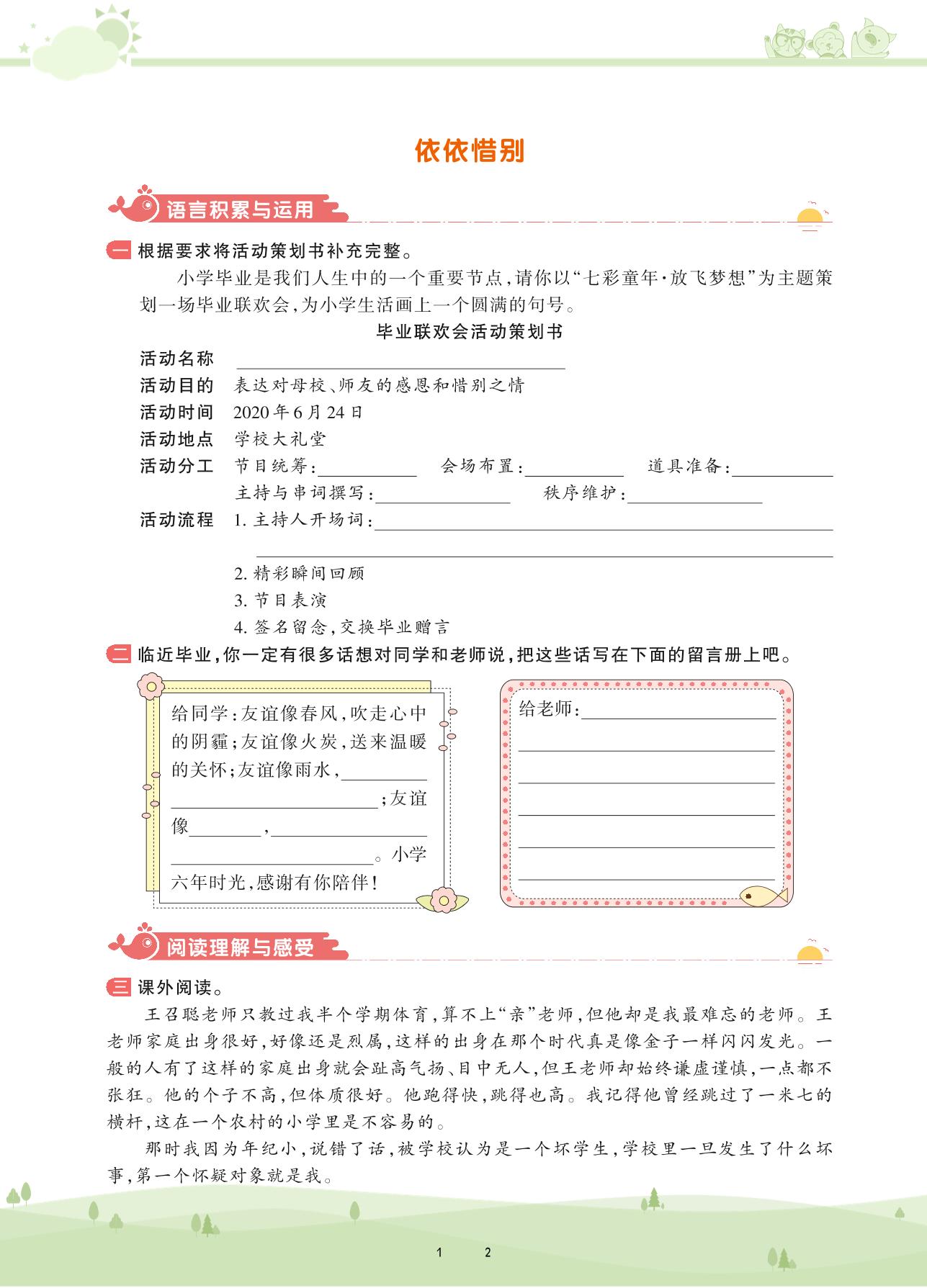 2021下册六年级语文人教版 第六单元——依依惜别_R210923155734555