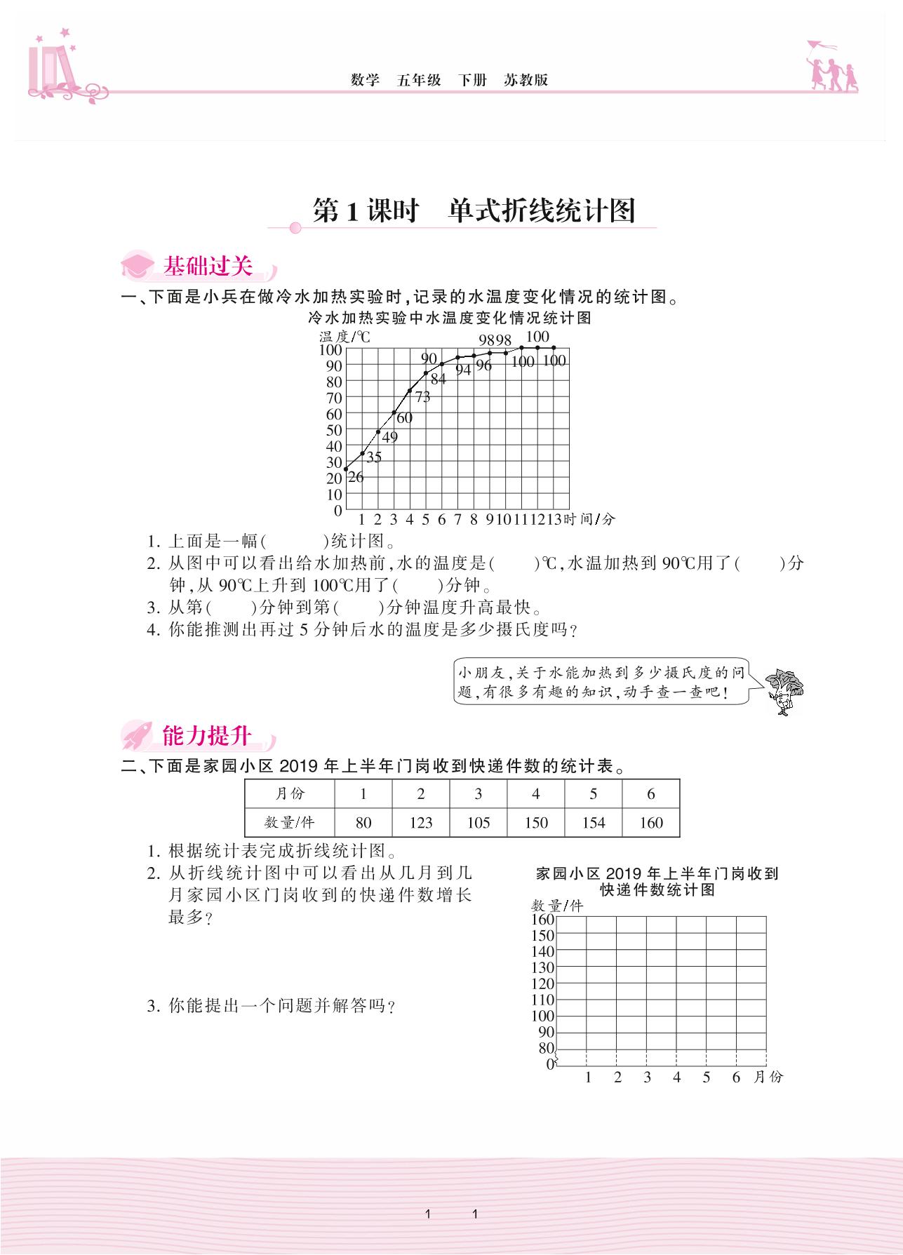 2021下册五年级数学苏教版 二 折线统计图——第1课时 单式折线统计图