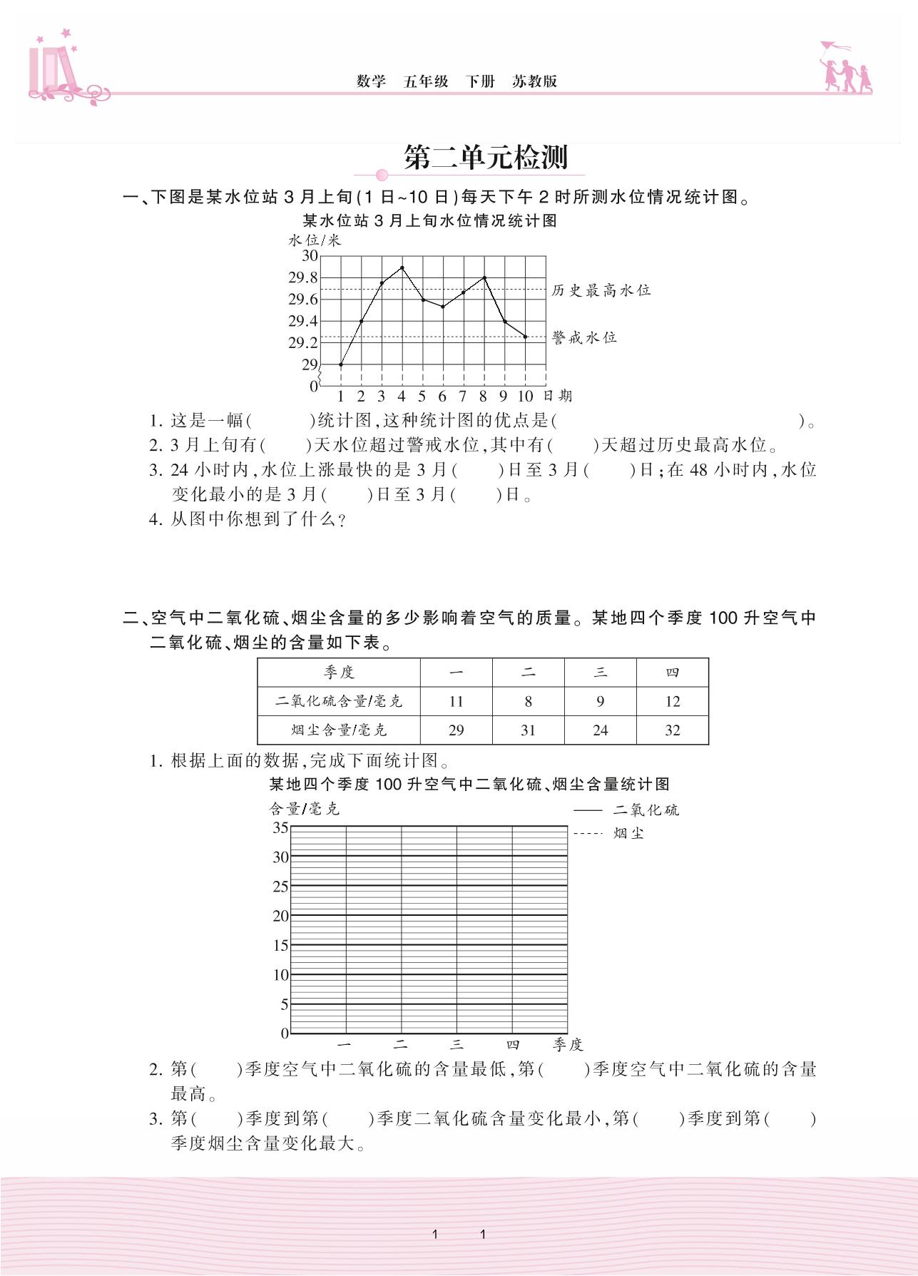 2021下册五年级数学苏教版 二 折线统计图——第二单元检测