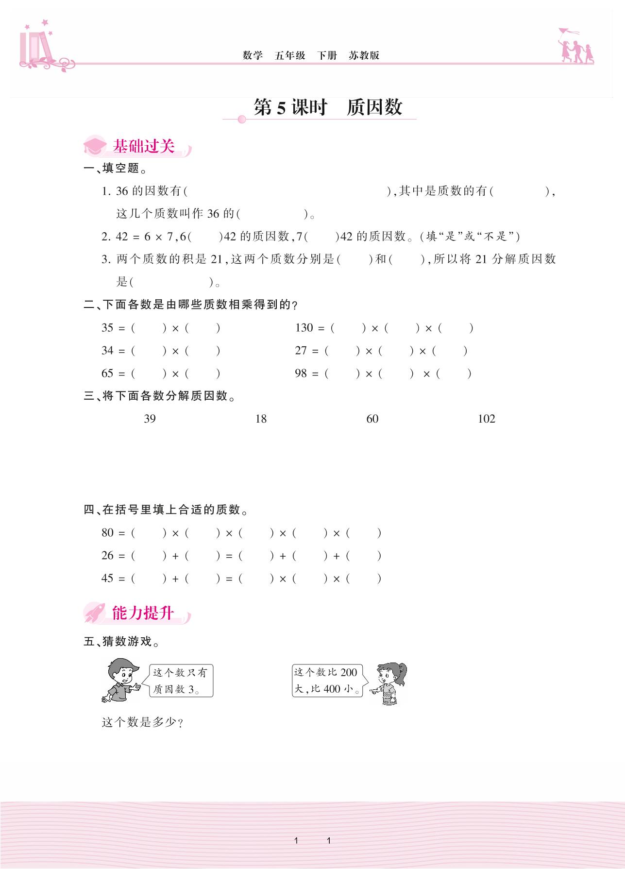 2021下册五年级数学苏教版 三 因数与倍数——第5课时 质因数