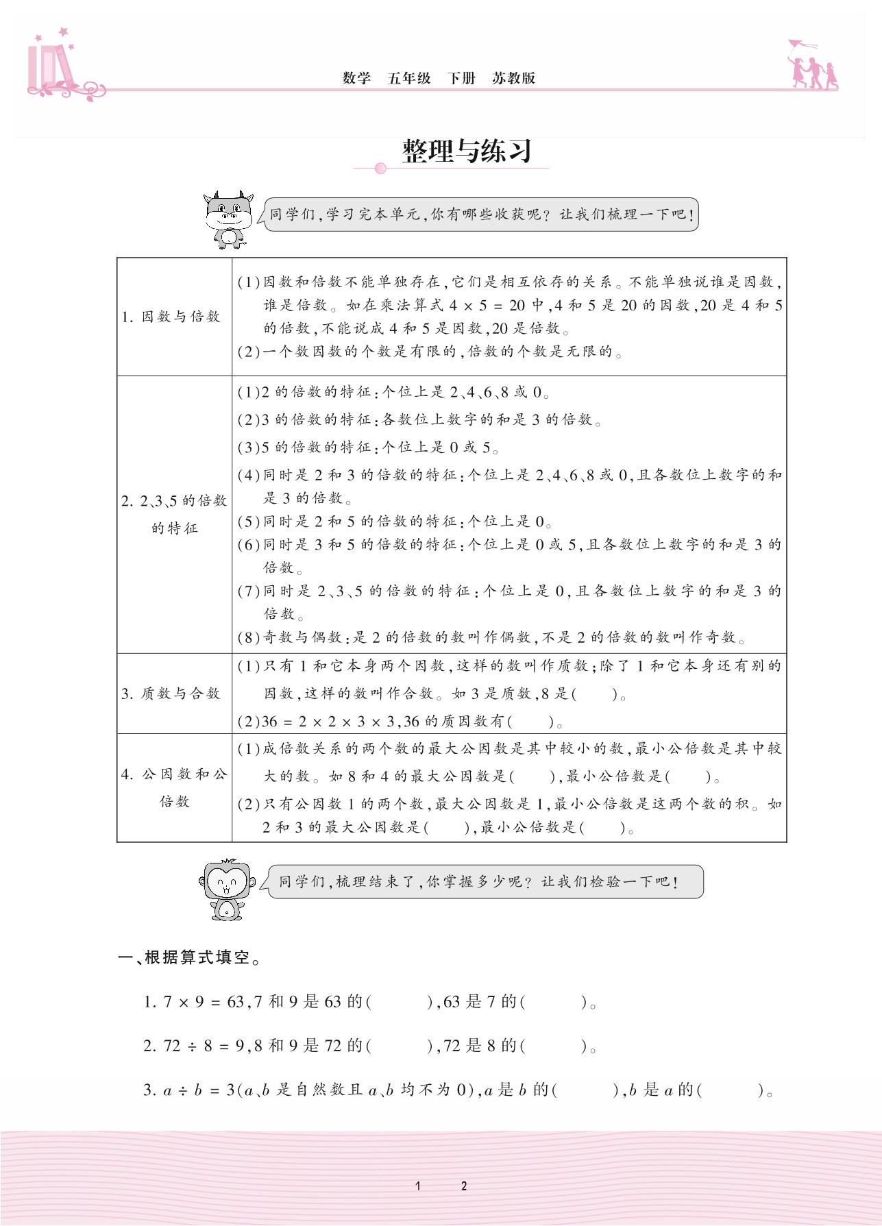2021下册五年级数学苏教版 三 因数与倍数——整理与练习