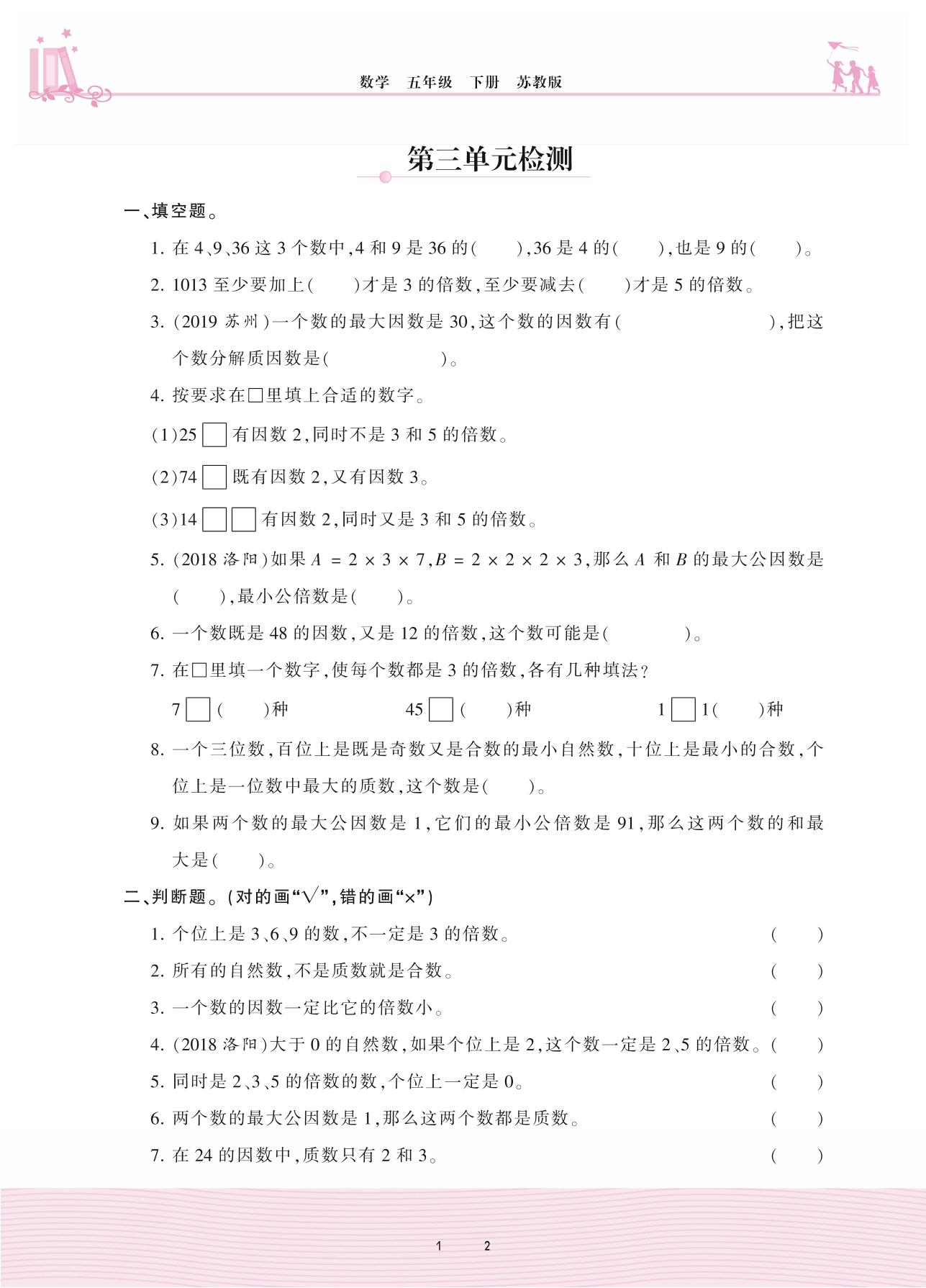 2021下册五年级数学苏教版 三 因数与倍数——第三单元检测