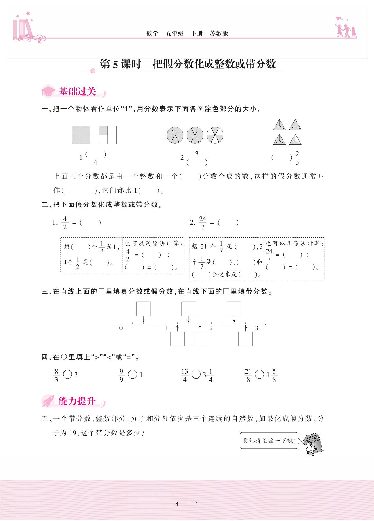 2021下册五年级数学苏教版 四 分数的意义和性质——第5课时 把假分数化成整数或带分数