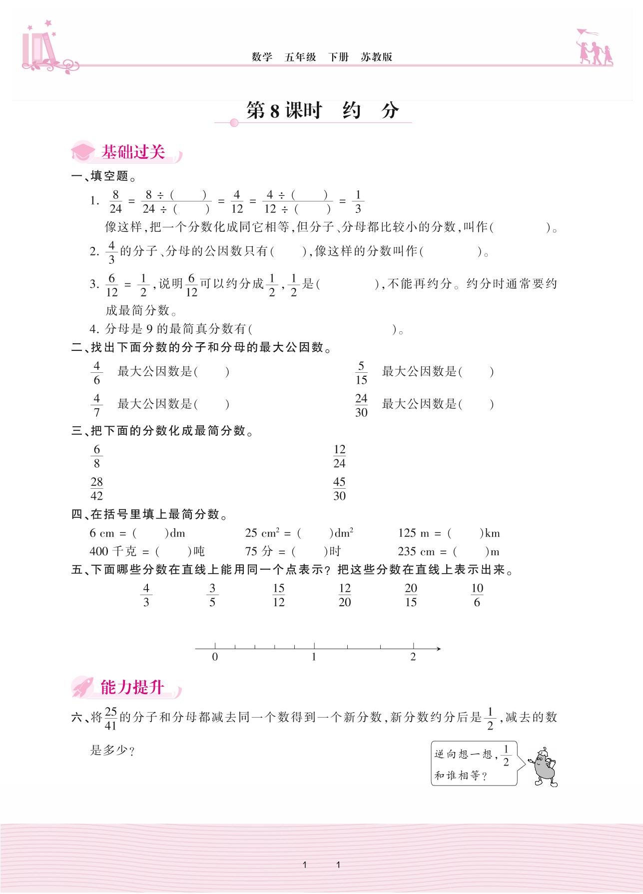 2021下册五年级数学苏教版 四 分数的意义和性质——第8课时 约分