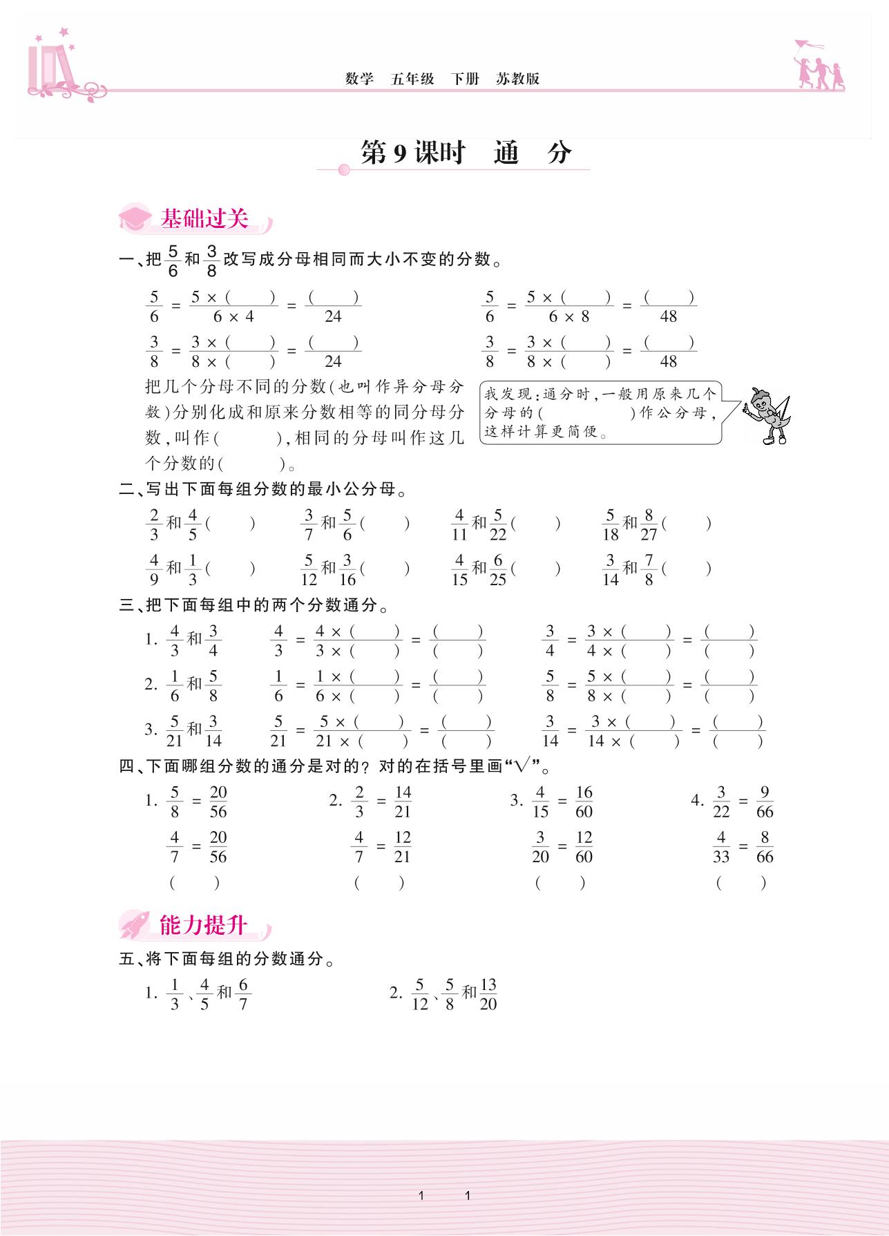 2021下册五年级数学苏教版 四 分数的意义和性质——第9课时 通分