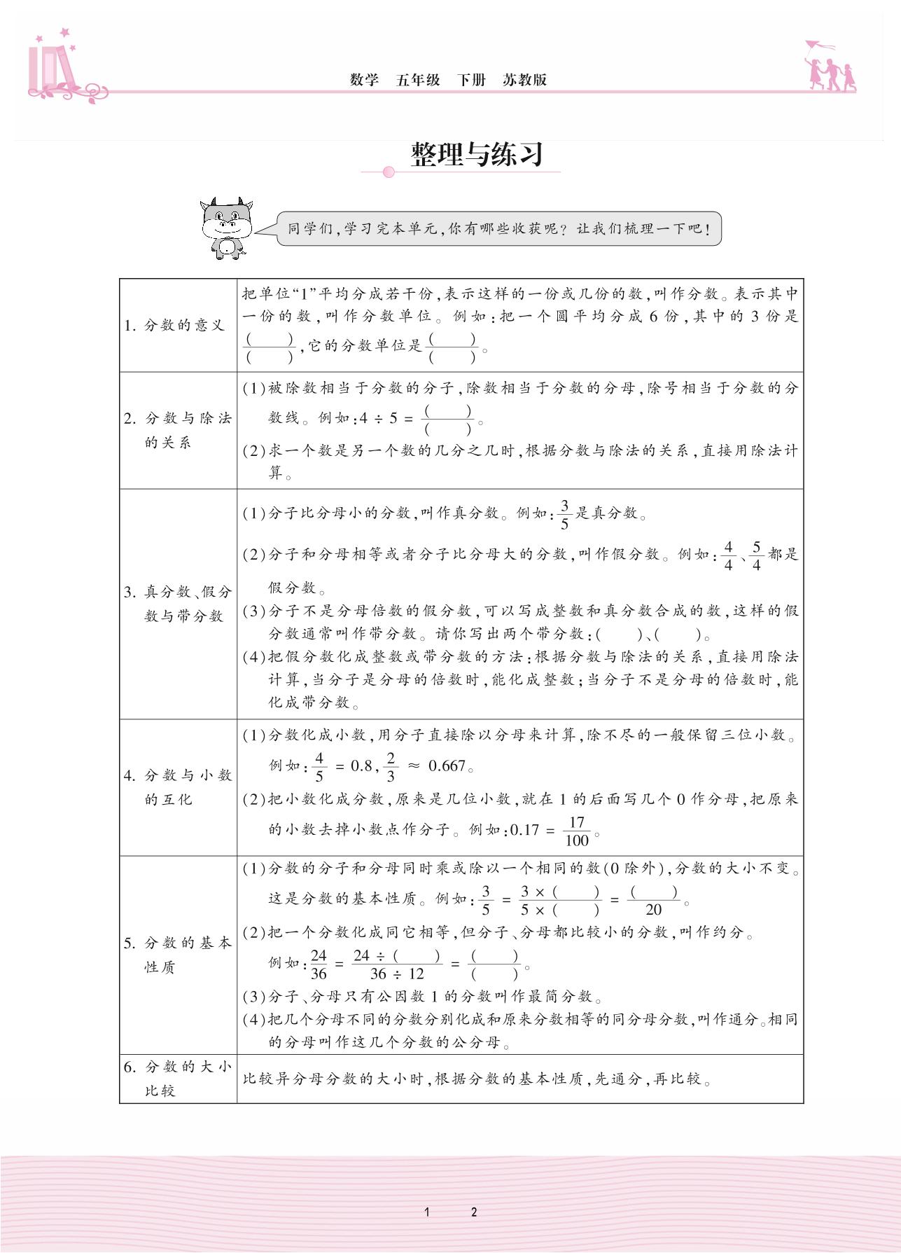 2021下册五年级数学苏教版 四 分数的意义和性质——整理与练习