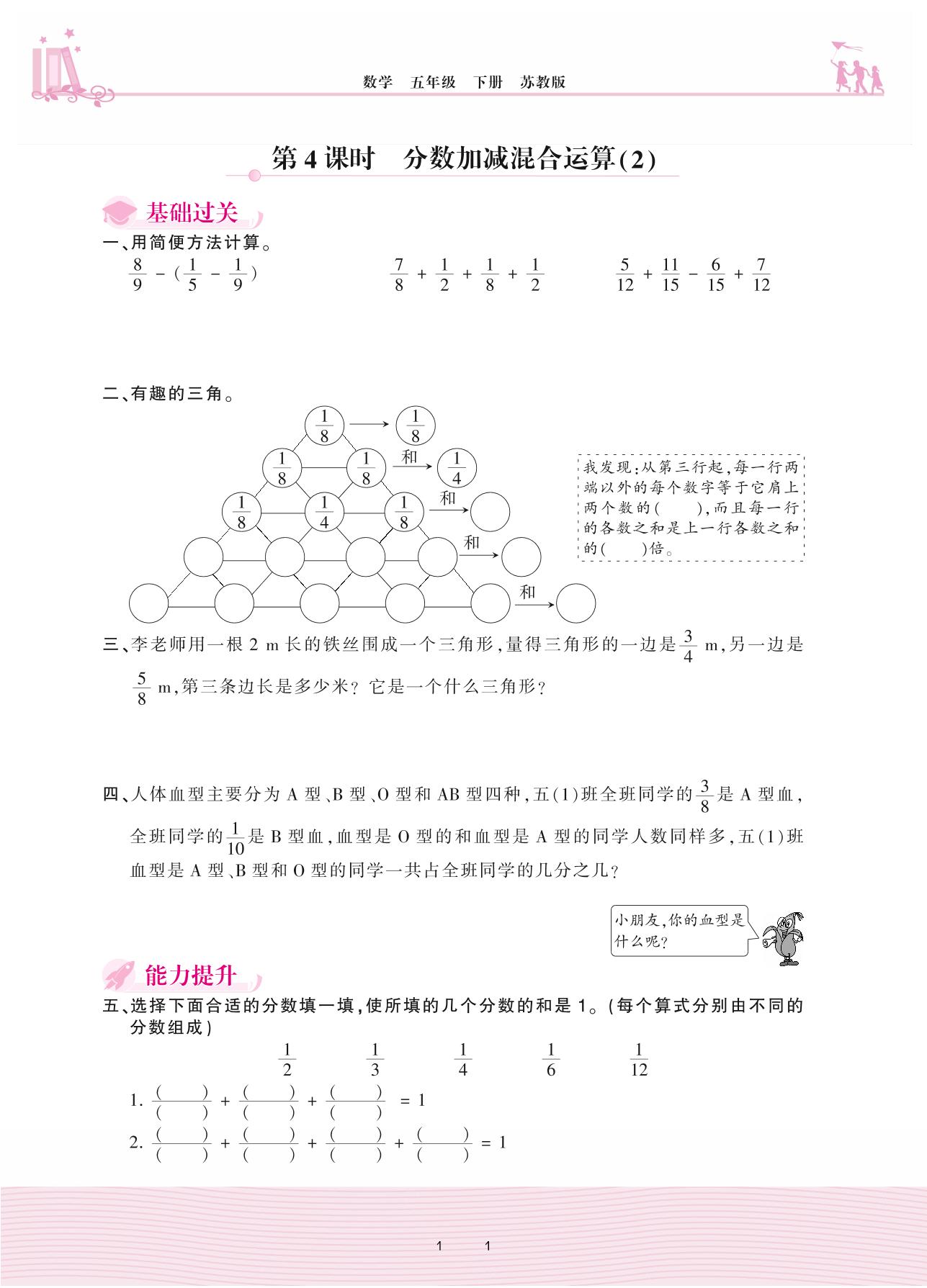 2021下册五年级数学苏教版 五 分数加法和减法——第4课时 分数加减混合运算(2)