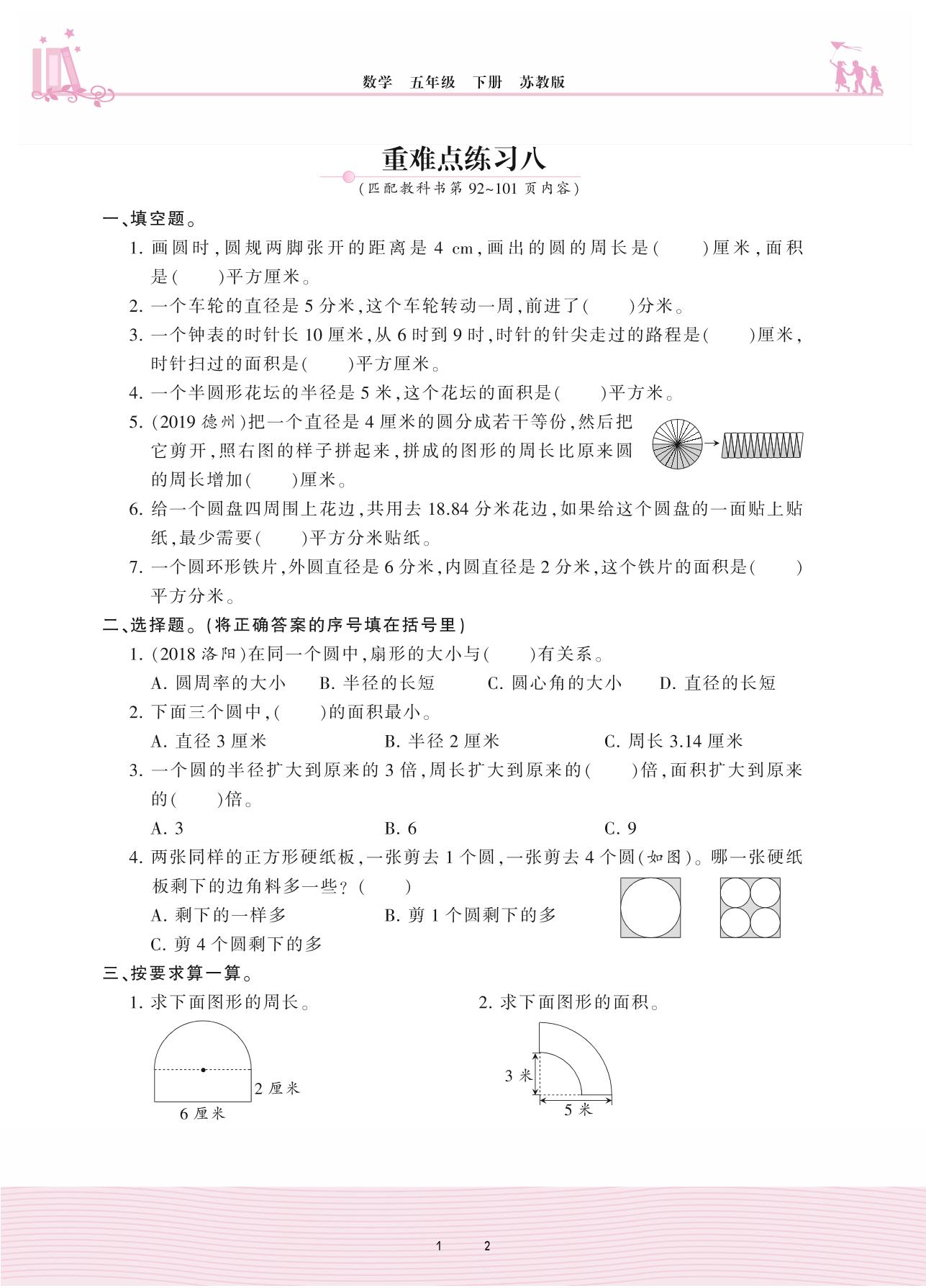 2021下册五年级数学苏教版 六 圆——重难点练习八