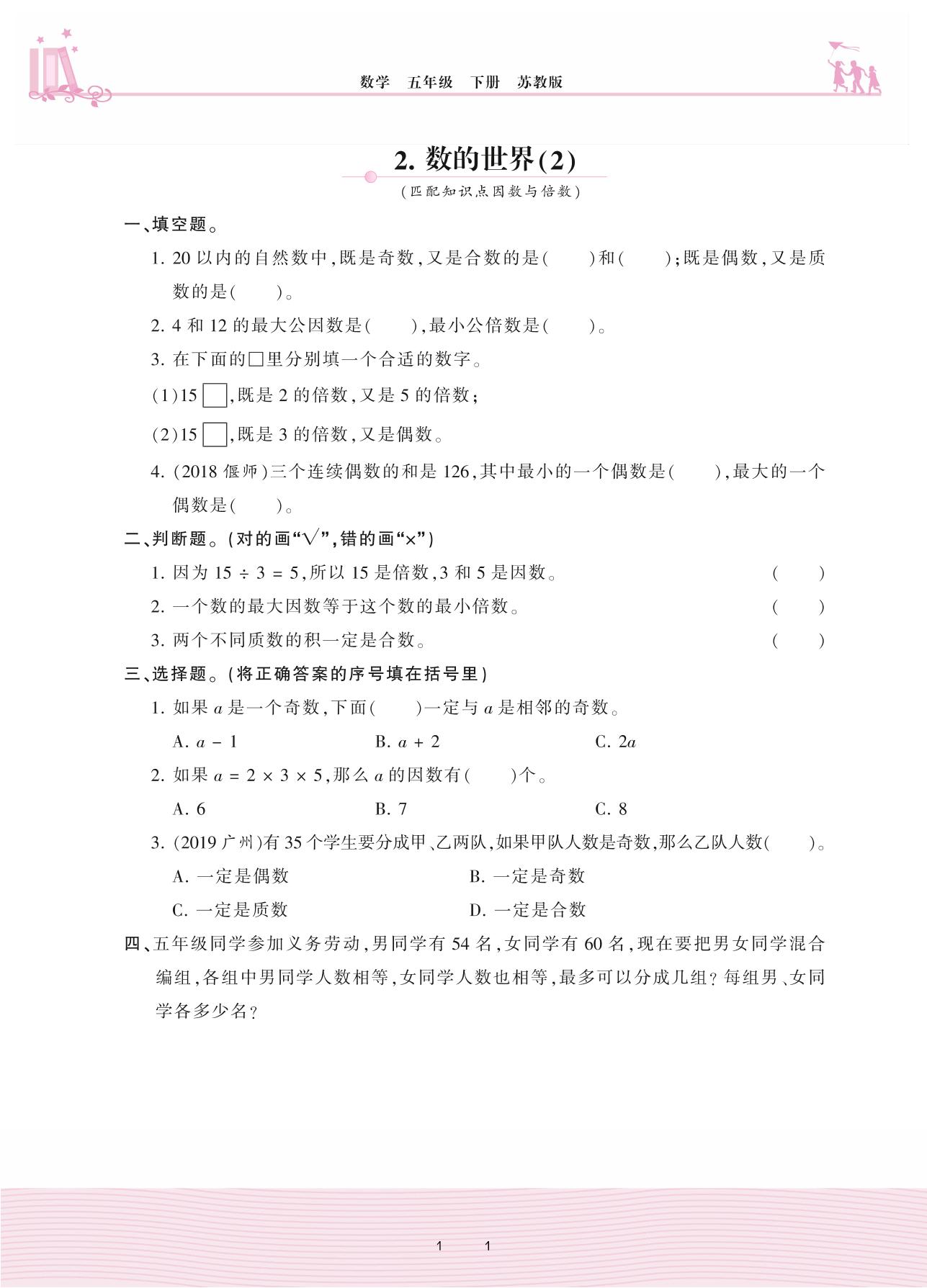 2021下册五年级数学苏教版 八 整理与复习——2. 数的世界(2)