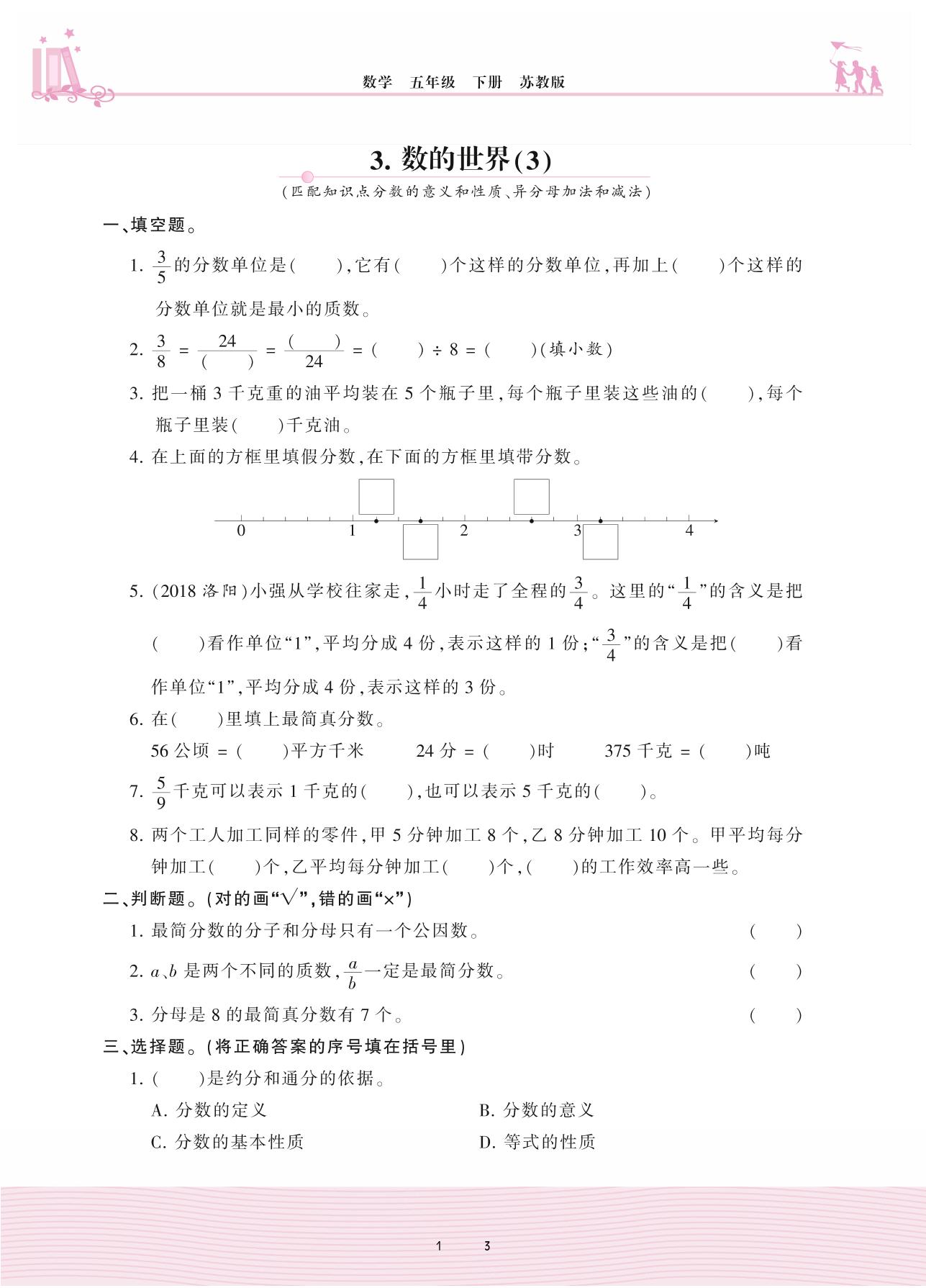 2021下册五年级数学苏教版 八 整理与复习——3. 数的世界(3)