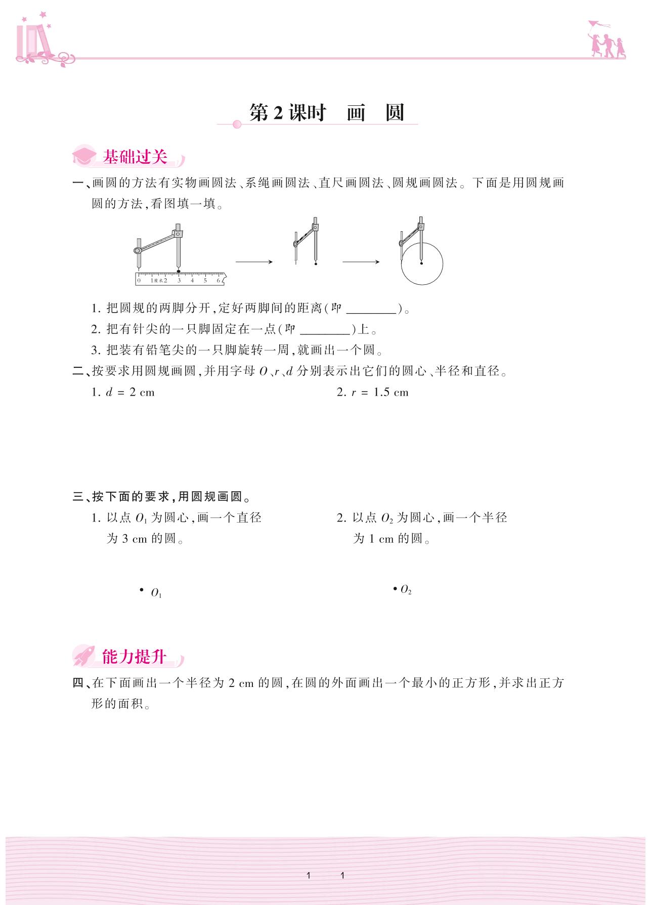 2020上册六年级数学冀教版 一 圆和扇形——第2课时 画圆