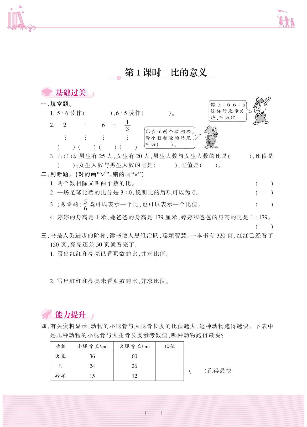 2020上册六年级数学冀教版 二 比和比例——第1课时 比的意义