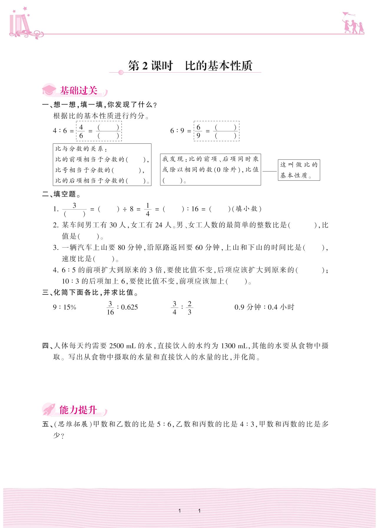 2020上册六年级数学冀教版 二 比和比例——第2课时 比的基本性质