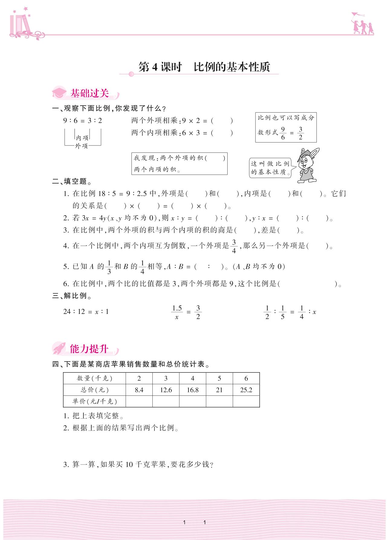 2020上册六年级数学冀教版 二 比和比例——第4课时 比例的基本性质