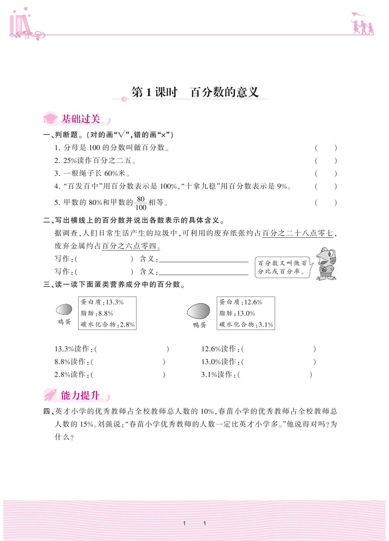 2020上册六年级数学冀教版 三 百分数——第1课时 百分数的意义