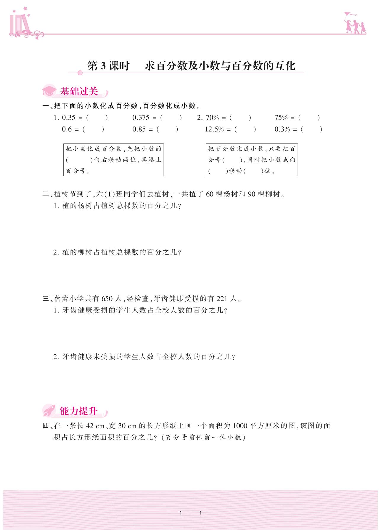 2020上册六年级数学冀教版 三 百分数——第3课时 求百分数及小数与百分数的互化