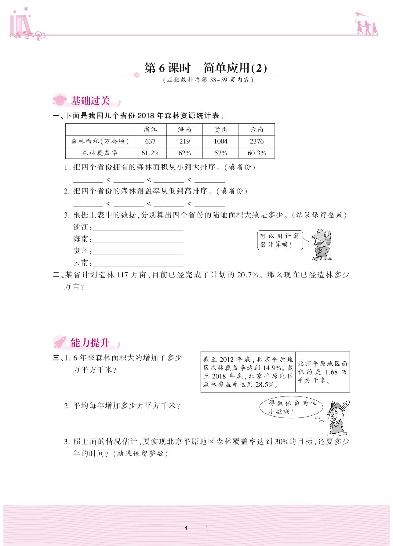 2020上册六年级数学冀教版 三 百分数——第6课时 简单应用(2)