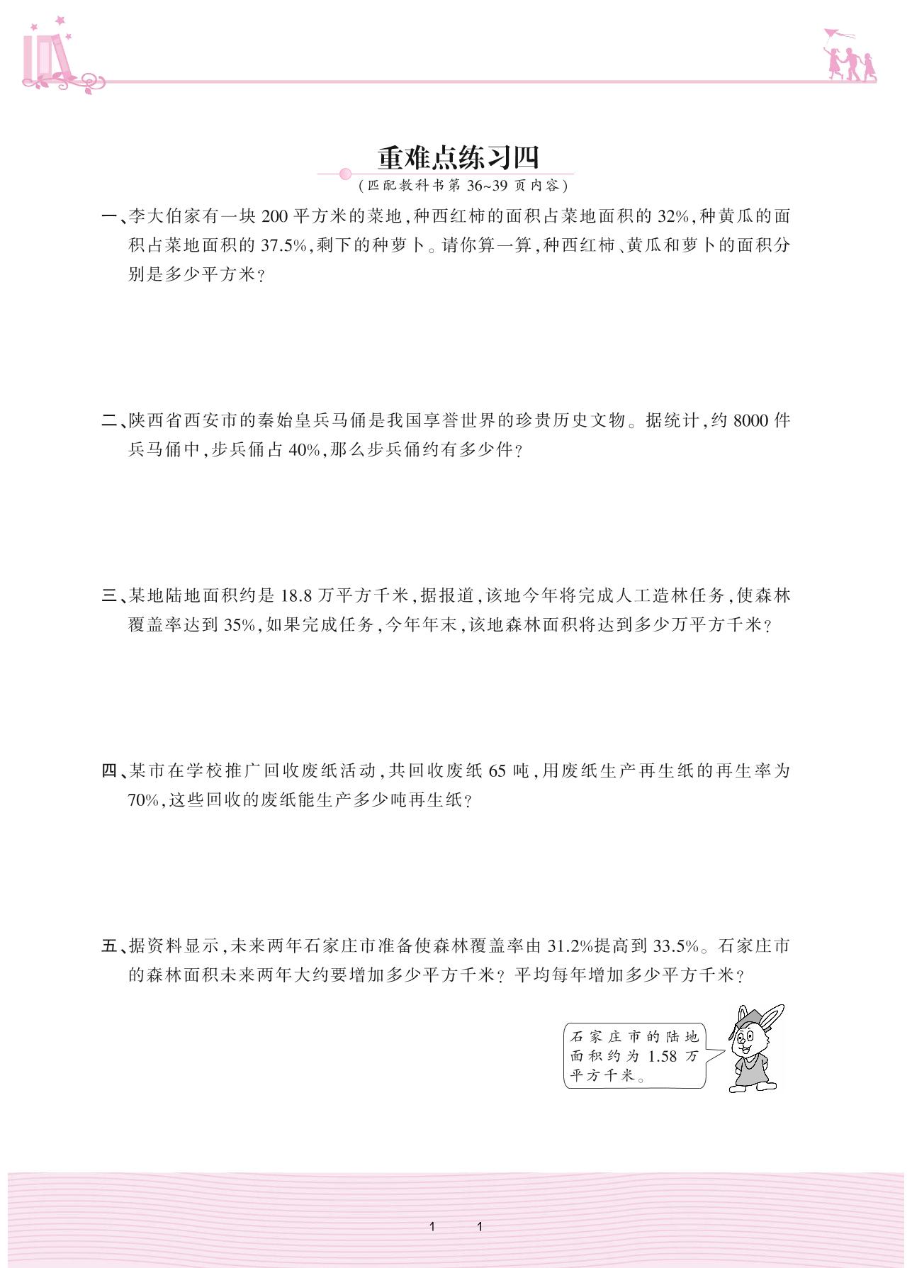 2020上册六年级数学冀教版 三 百分数——重难点练习四