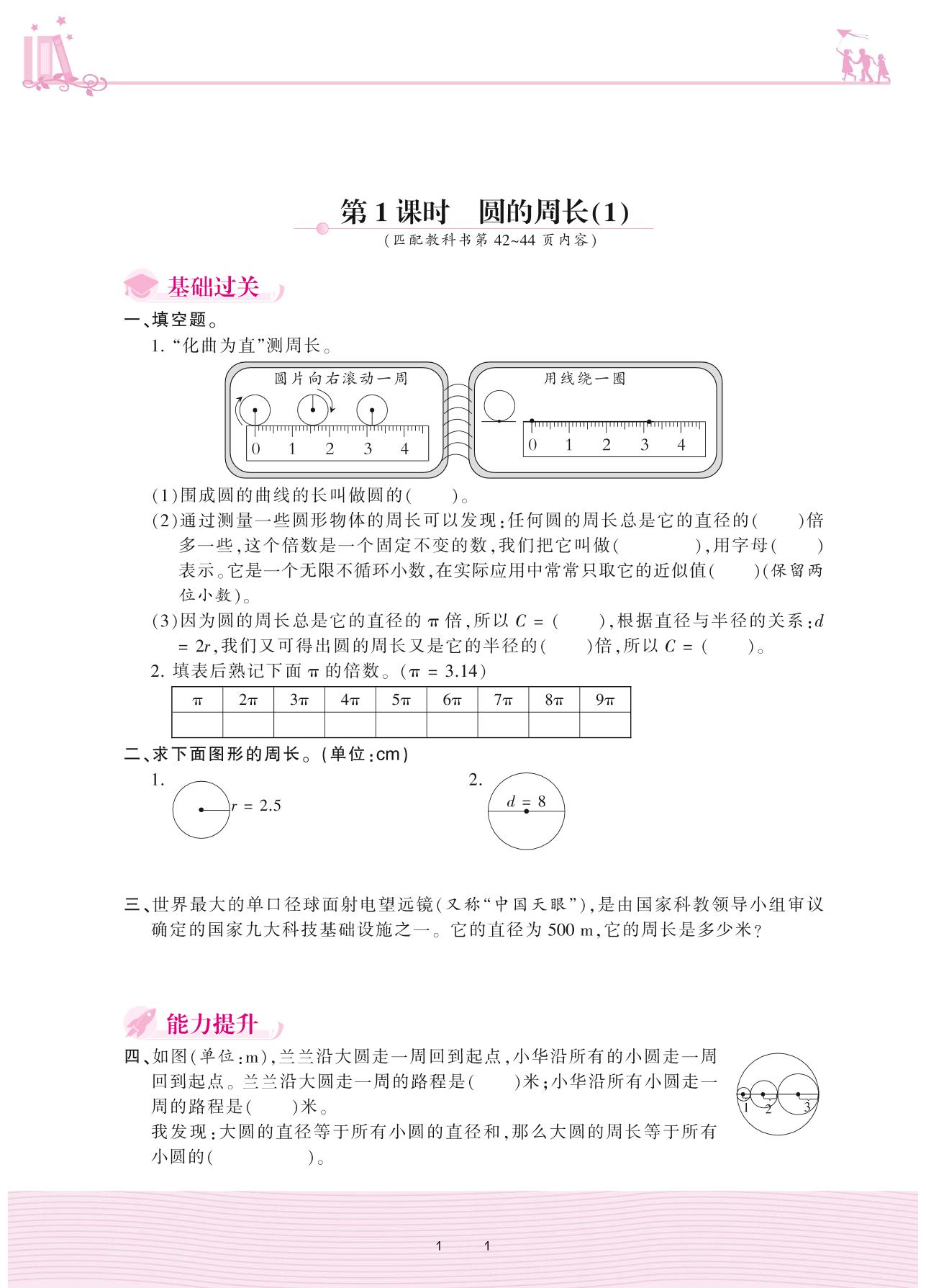2020上册六年级数学冀教版 四 圆的周长和面积——第1课时 圆的周长(1)