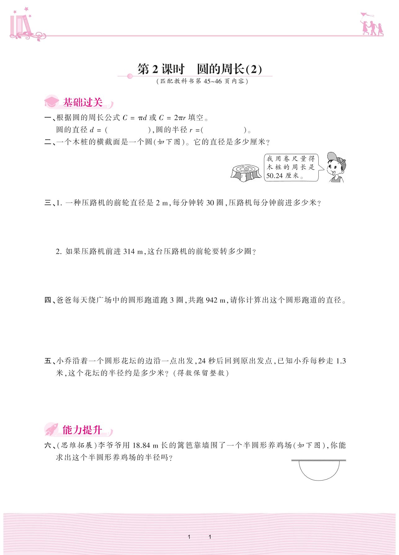 2020上册六年级数学冀教版 四 圆的周长和面积——第2课时 圆的周长(2)