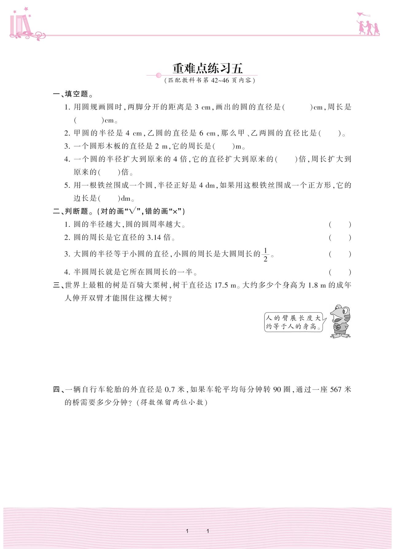 2020上册六年级数学冀教版 四 圆的周长和面积——重难点练习五