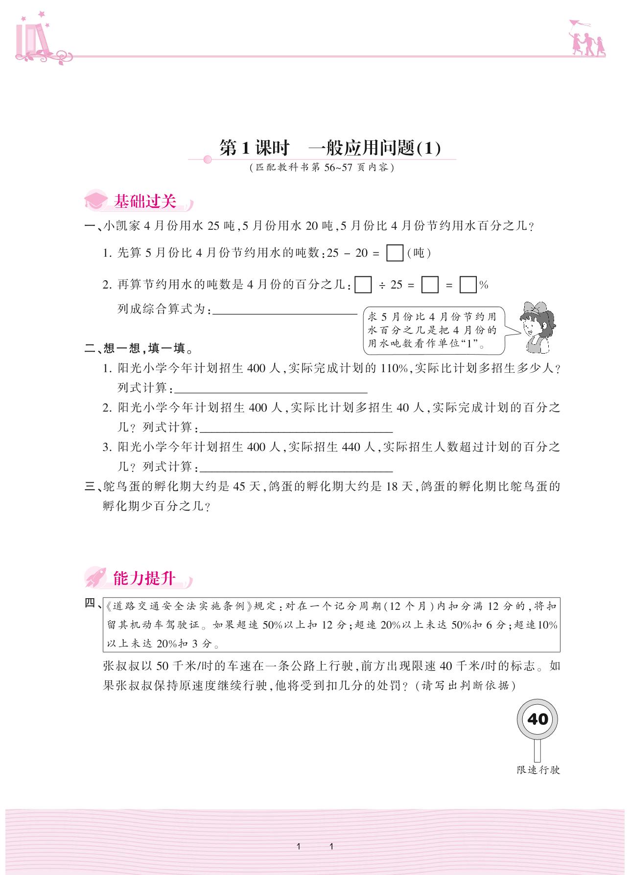 2020上册六年级数学冀教版 五 百分数的应用——第1课时 一般应用问题(1)