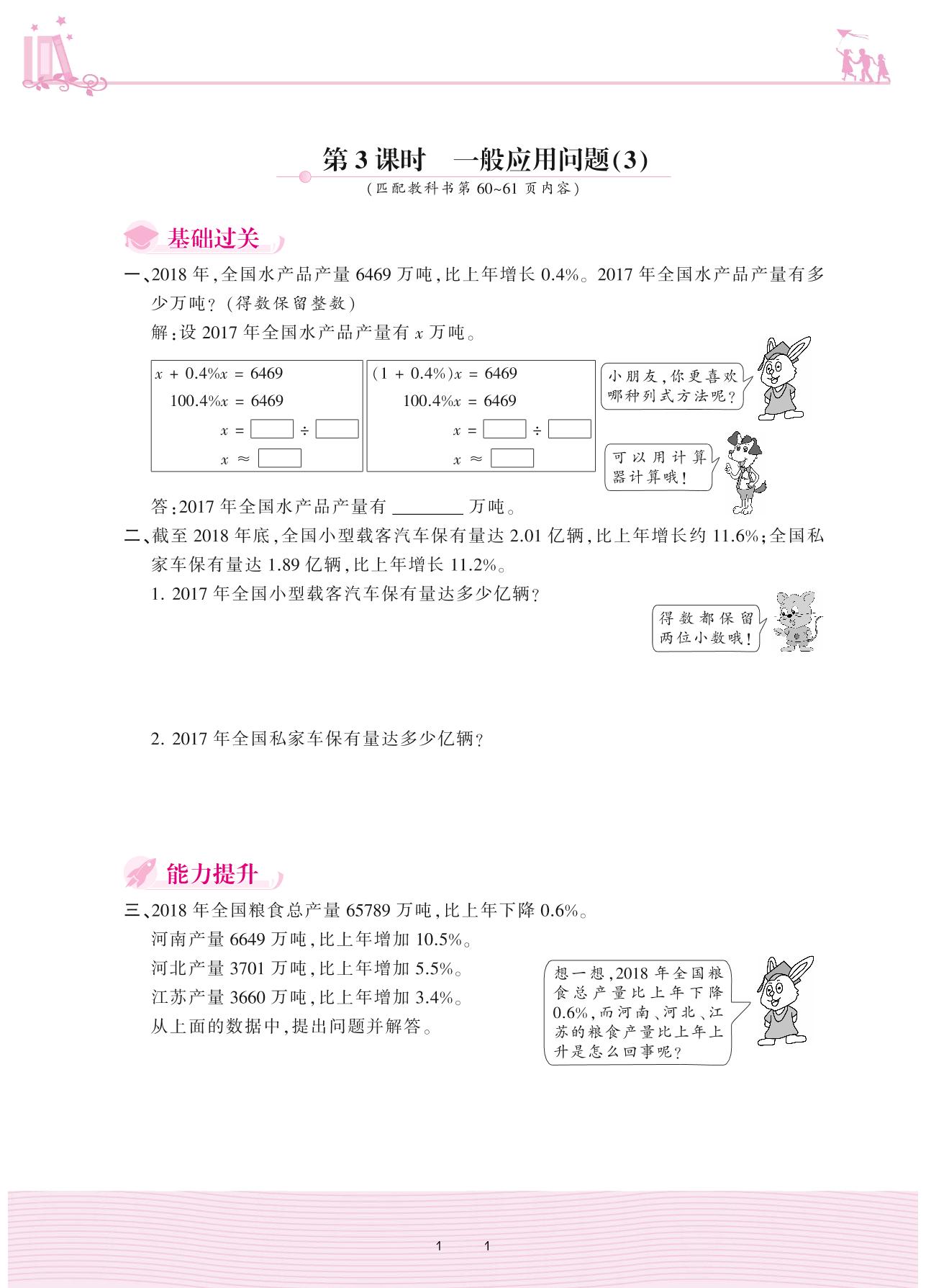 2020上册六年级数学冀教版 五 百分数的应用——第3课时 一般应用问题(3)