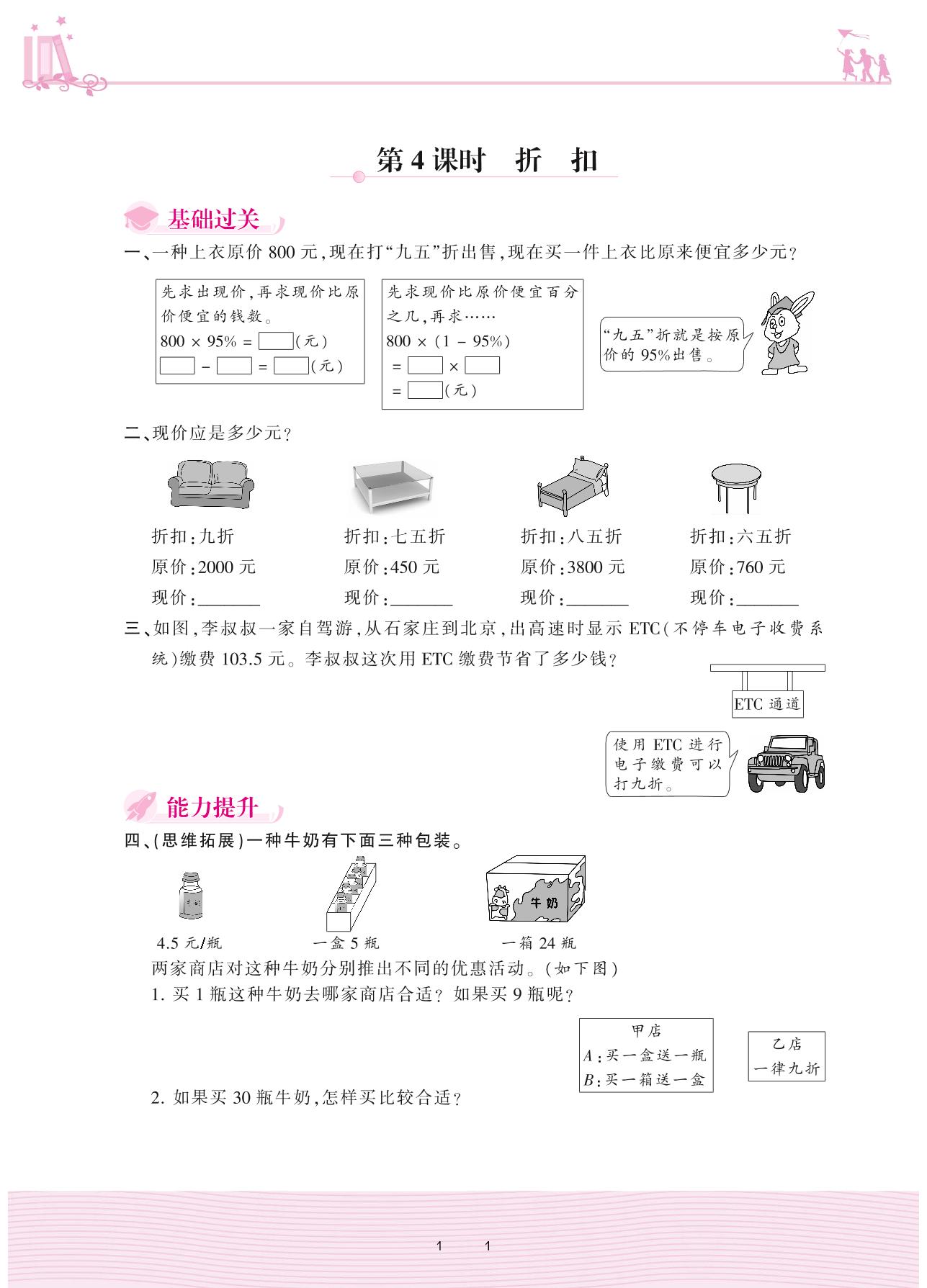 2020上册六年级数学冀教版 五 百分数的应用——第4课时 折扣