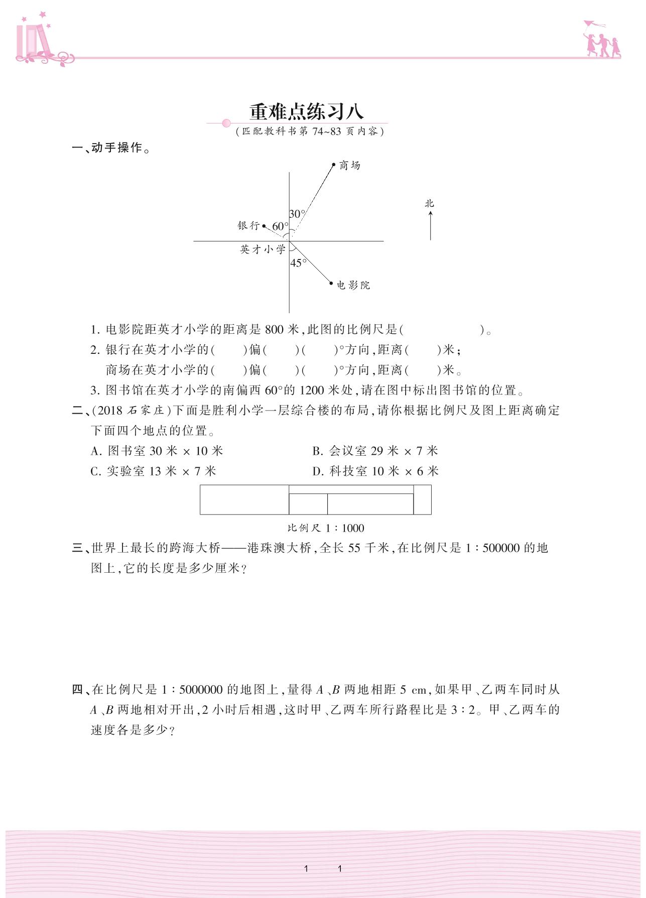 2020上册六年级数学冀教版 六 比例尺——重难点练习八