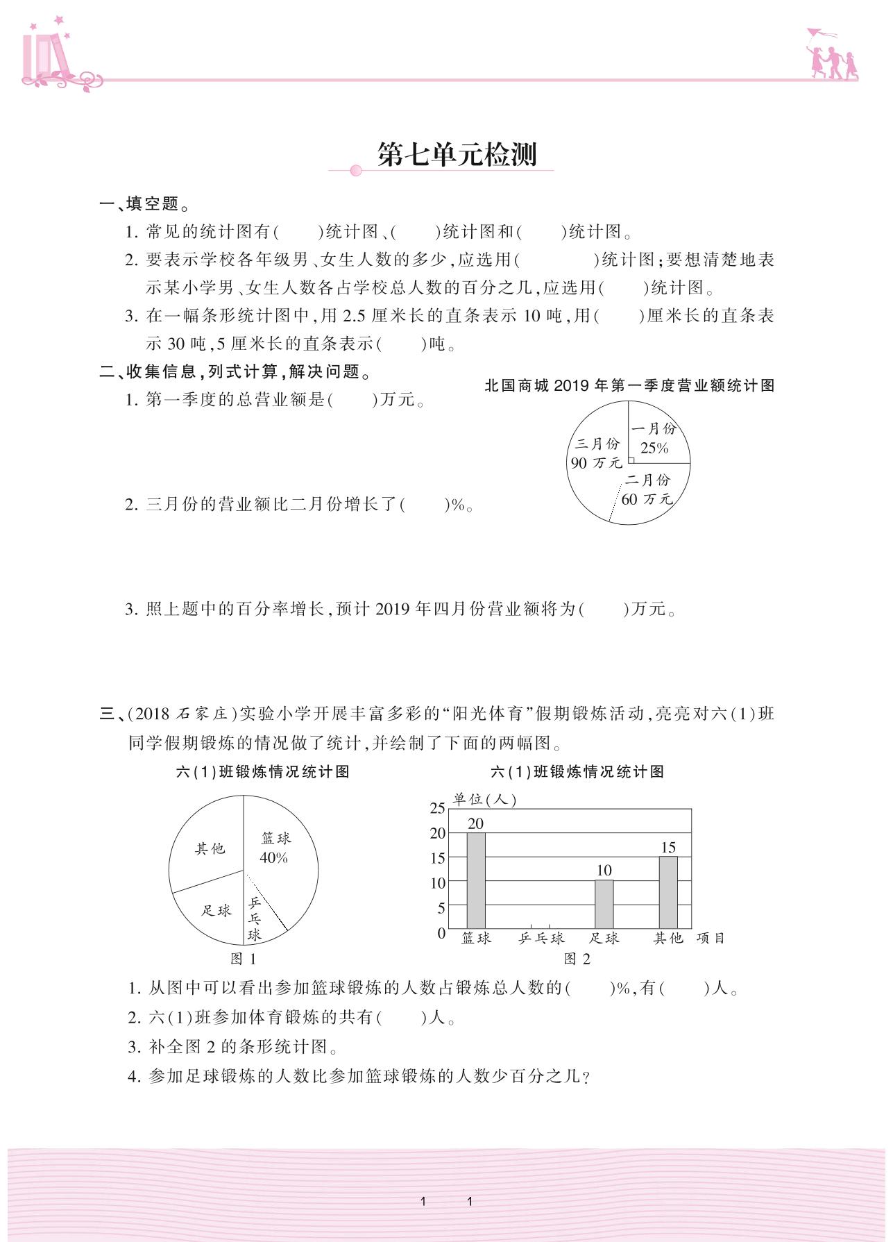2020上册六年级数学冀教版 七 扇形统计图——第七单元检测