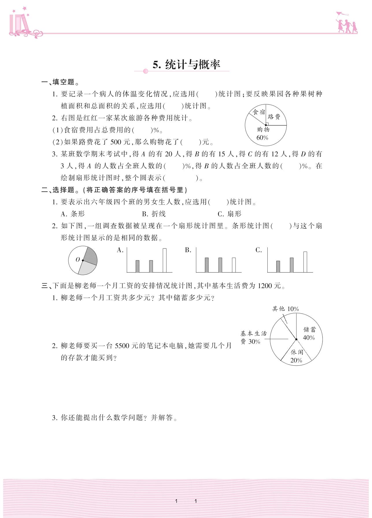 2020上册六年级数学冀教版 整理与评价——5. 统计与概率