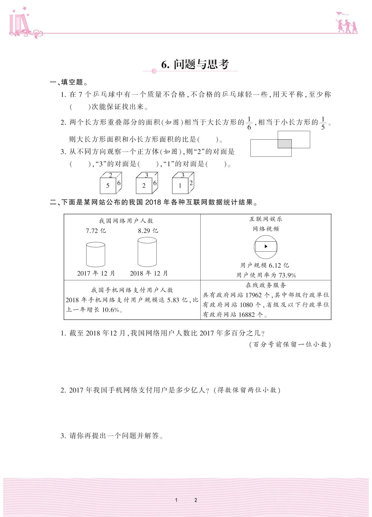2020上册六年级数学冀教版 整理与评价——6. 问题与思考