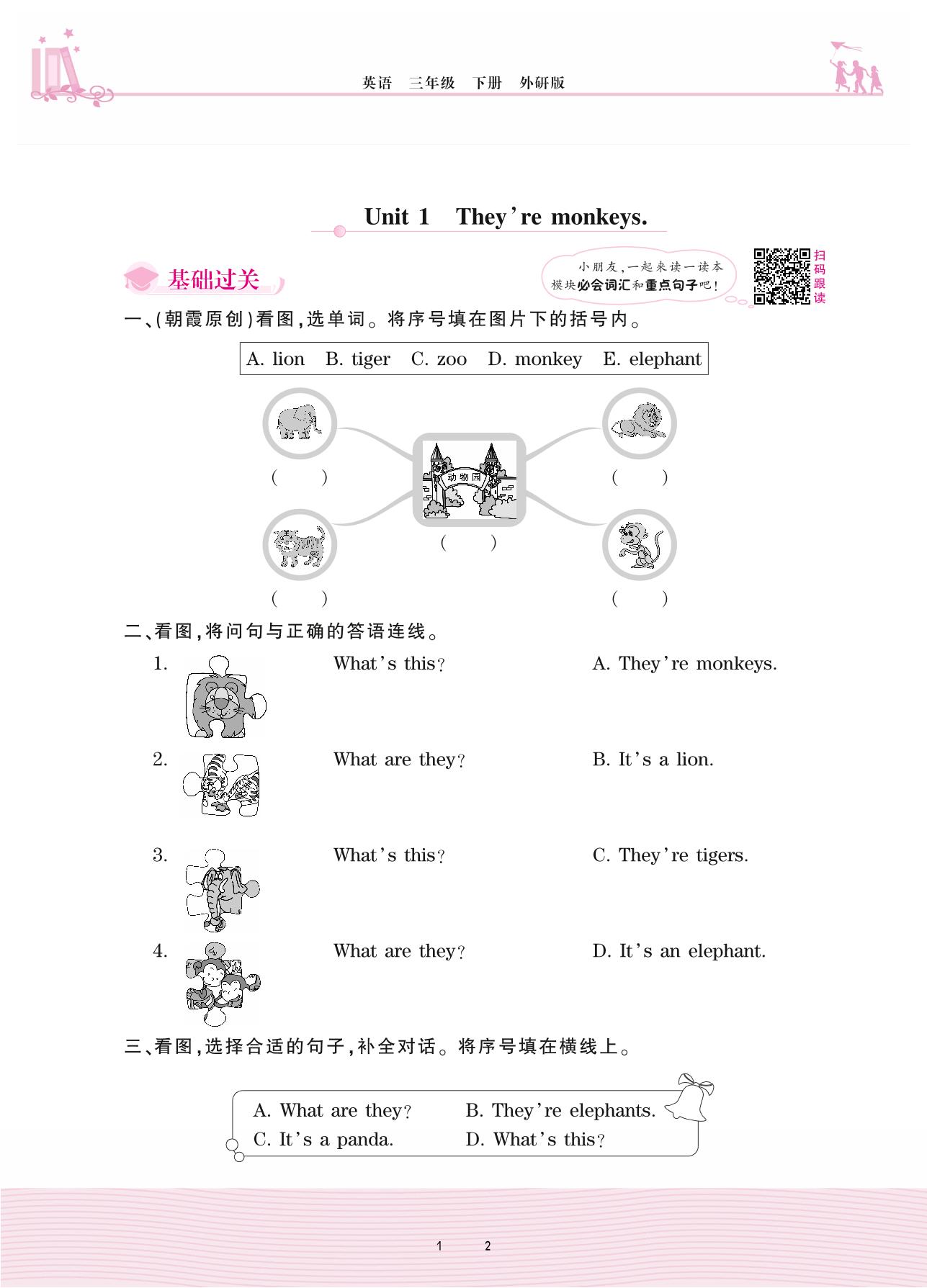 2021下册三年级英语外研版 Module 2—Unit 1 They’re monkeys.