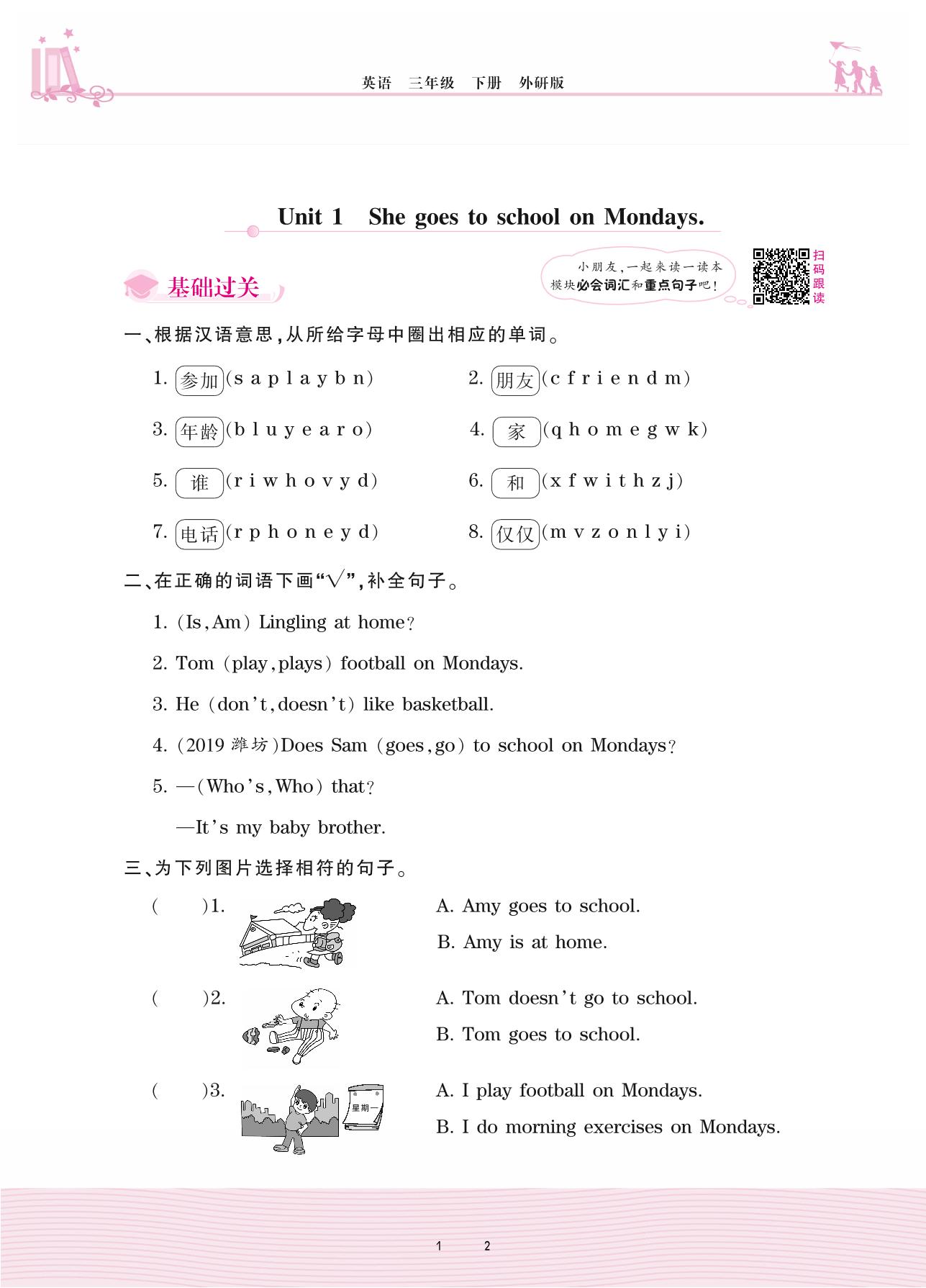 2021下册三年级英语外研版 Module 5—Unit 1 She goes to school on Mondays.