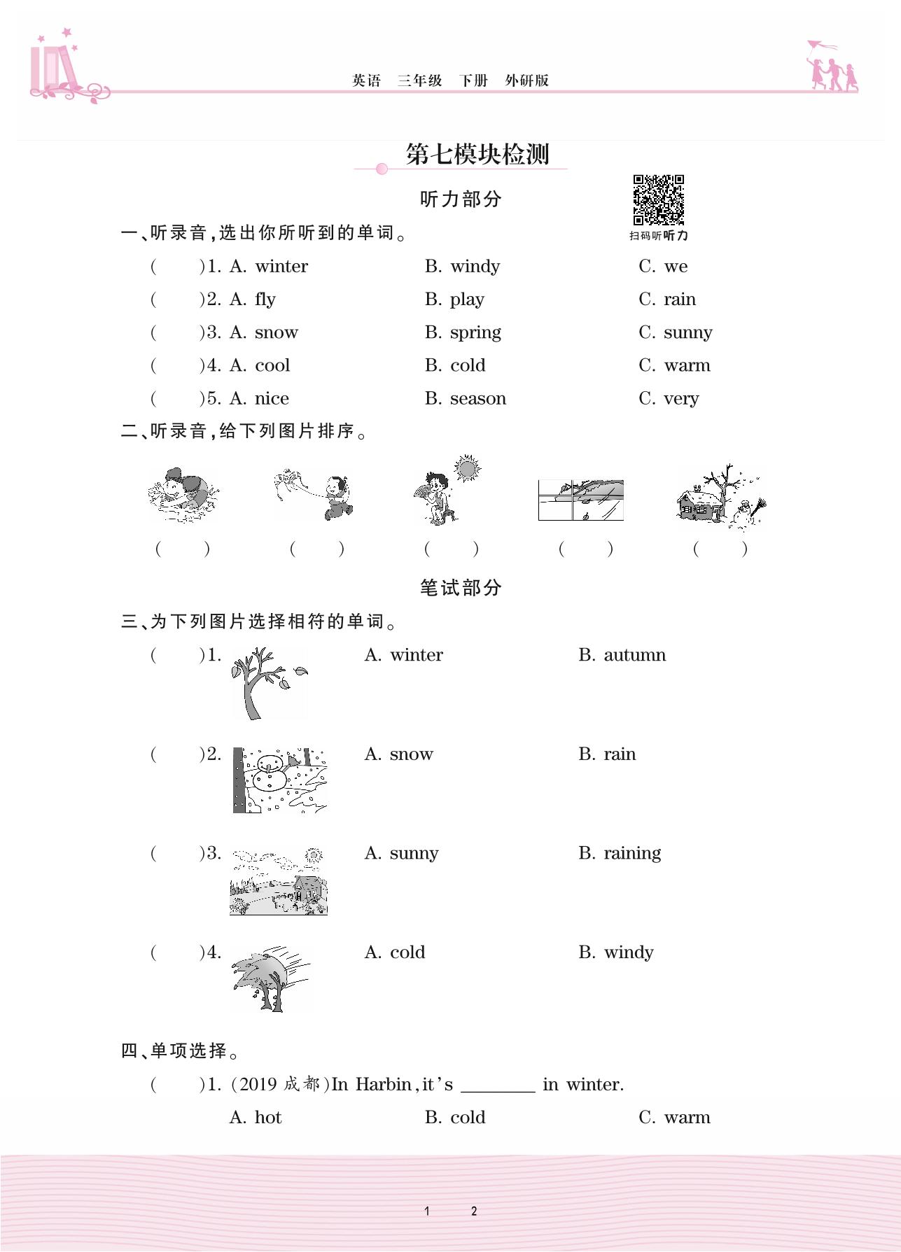 2021下册三年级英语外研版 Module 7—第七模块检测