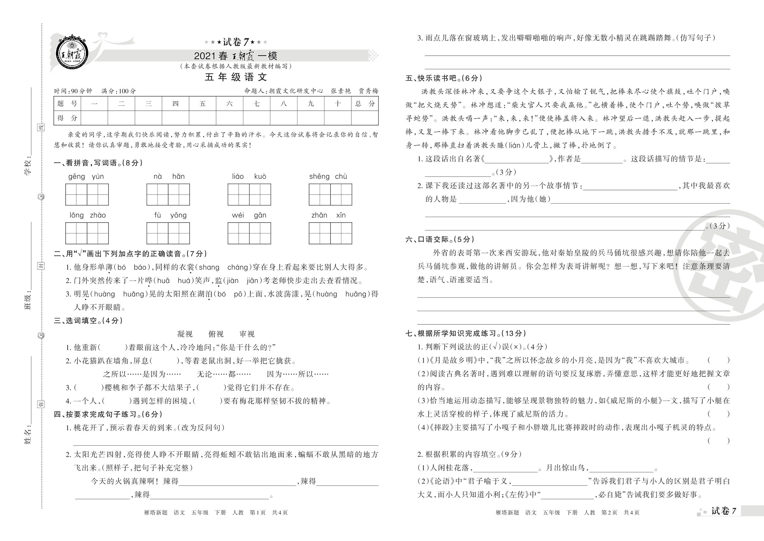 王朝霞期末模拟卷五年级下册语文(人教版)_R210801180654【7】