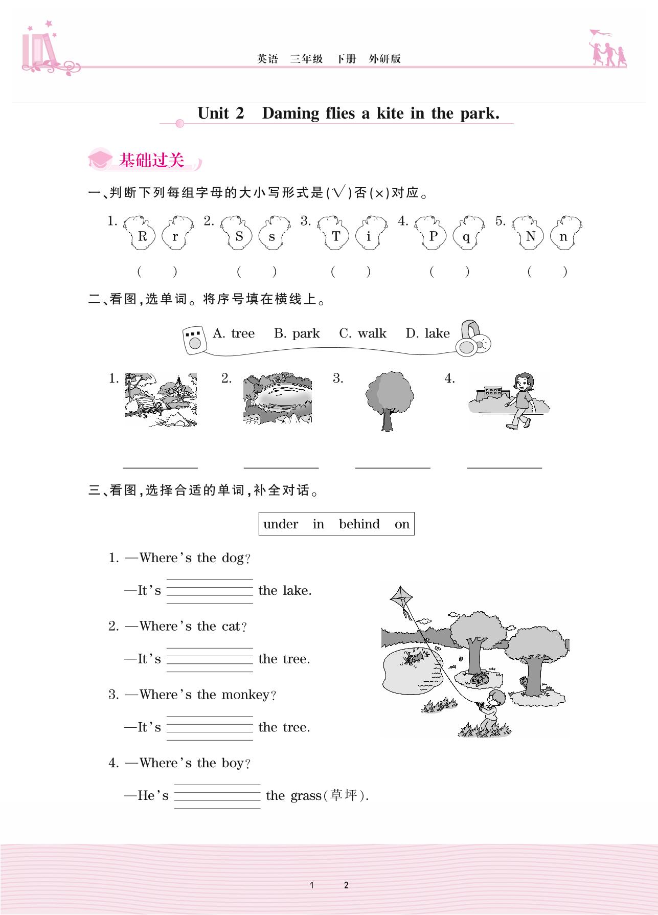 2021下册三年级英语外研版 Module 8—Unit 2 Daming flies a kite in the park.