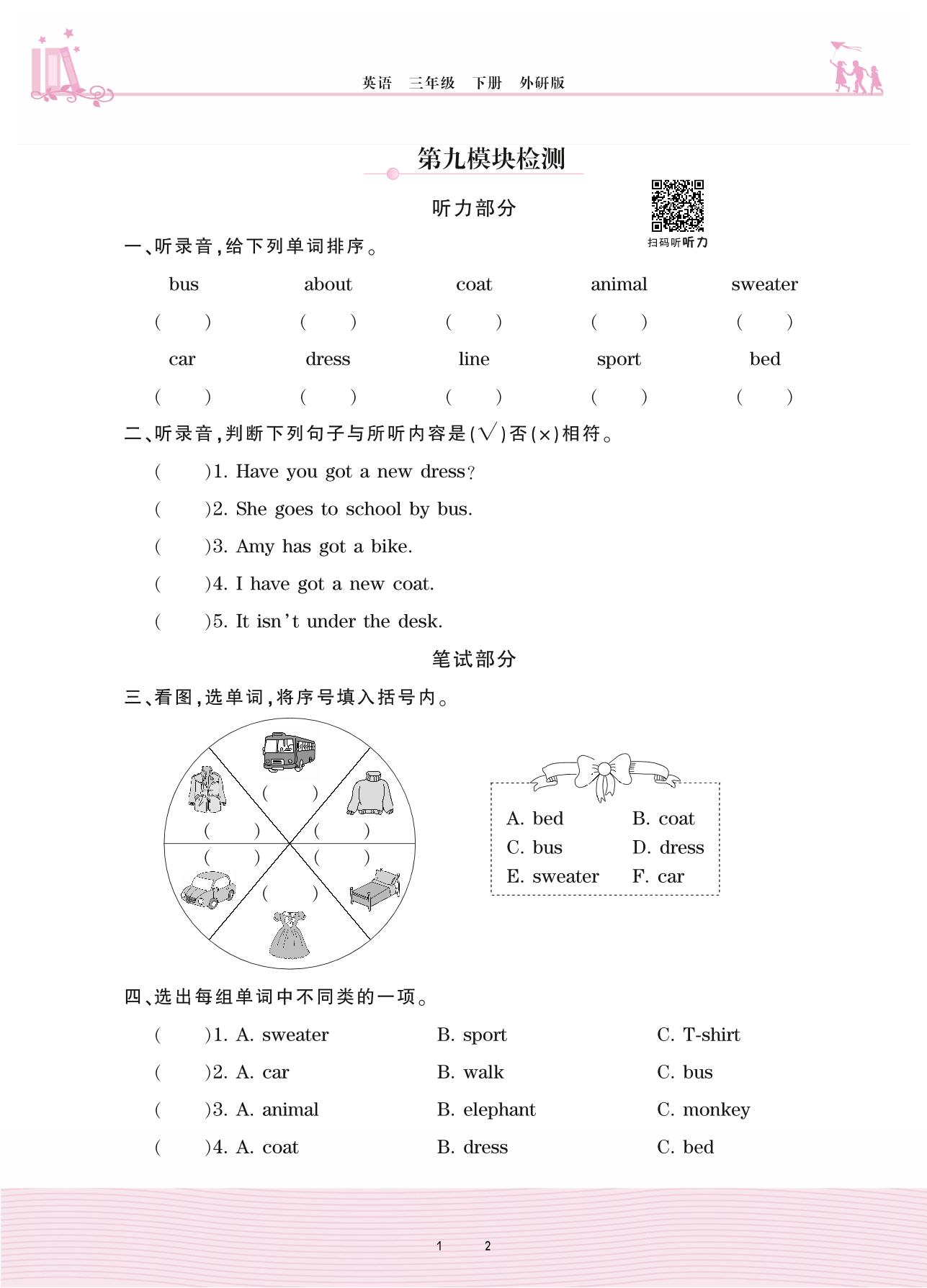 2021下册三年级英语外研版 Module 9—第九模块检测