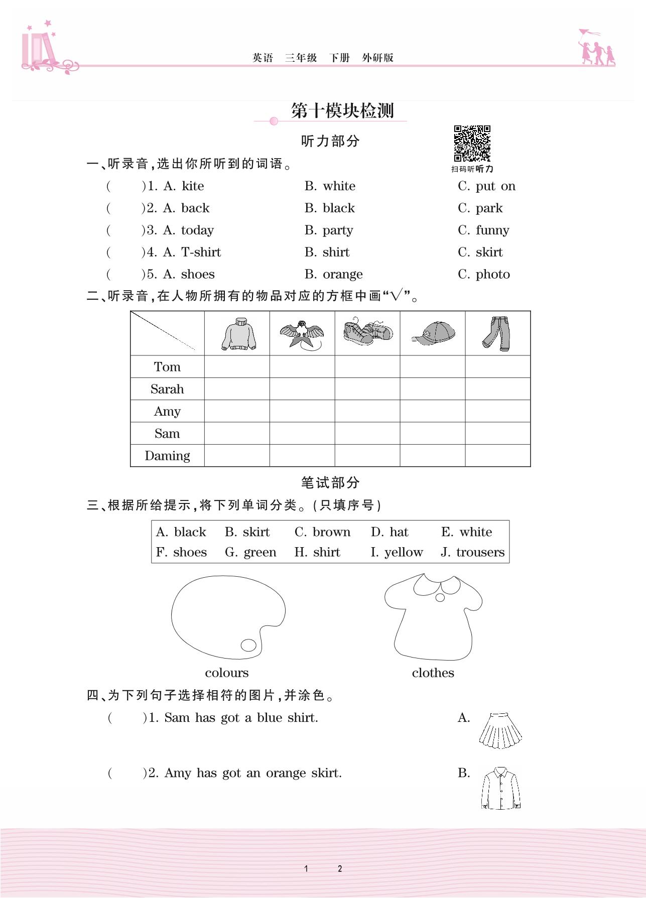 三年级英语外研版(三起始)下册单元卷