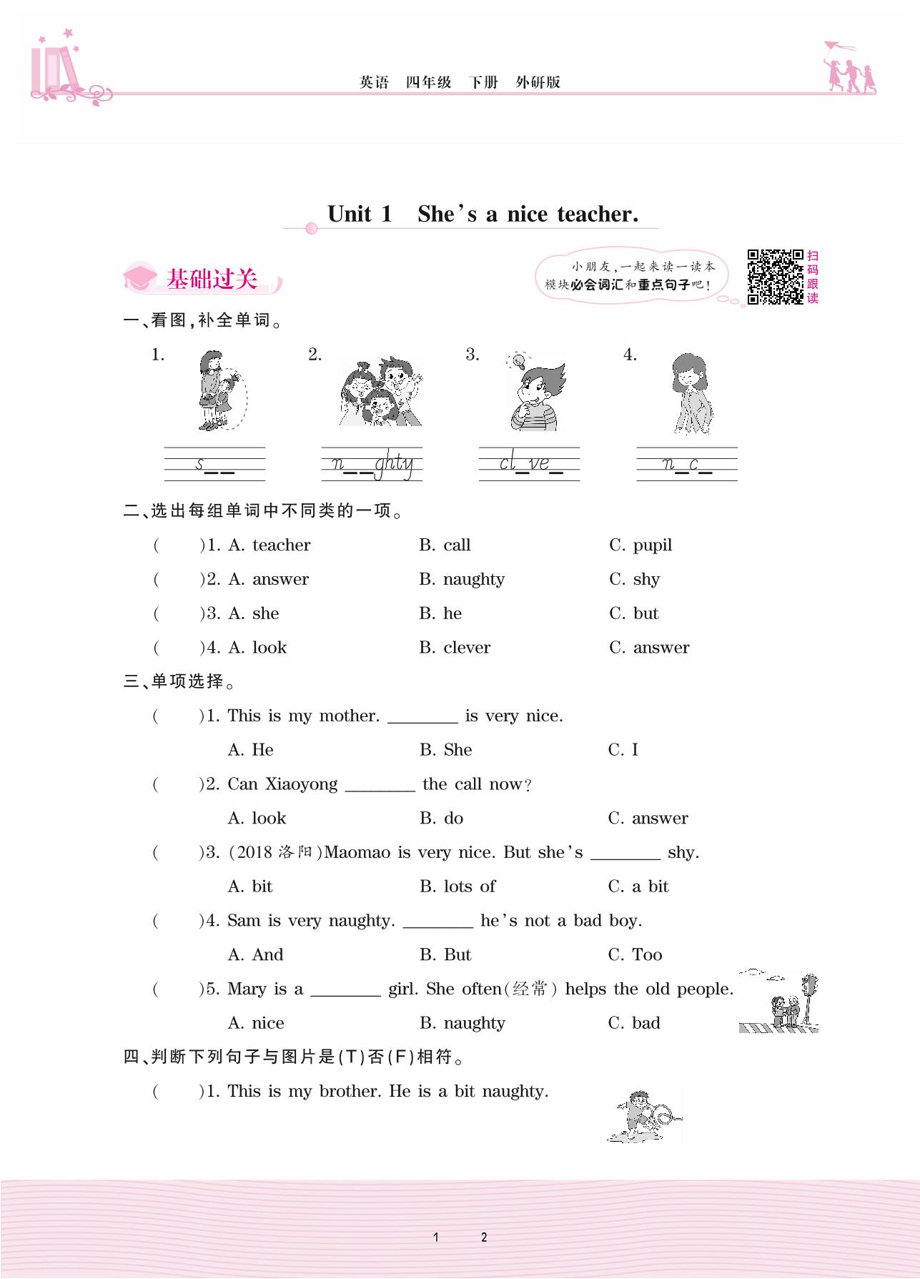 2021下册四年级英语外研版 Module 1—Unit 1 She’s a nice teacher.