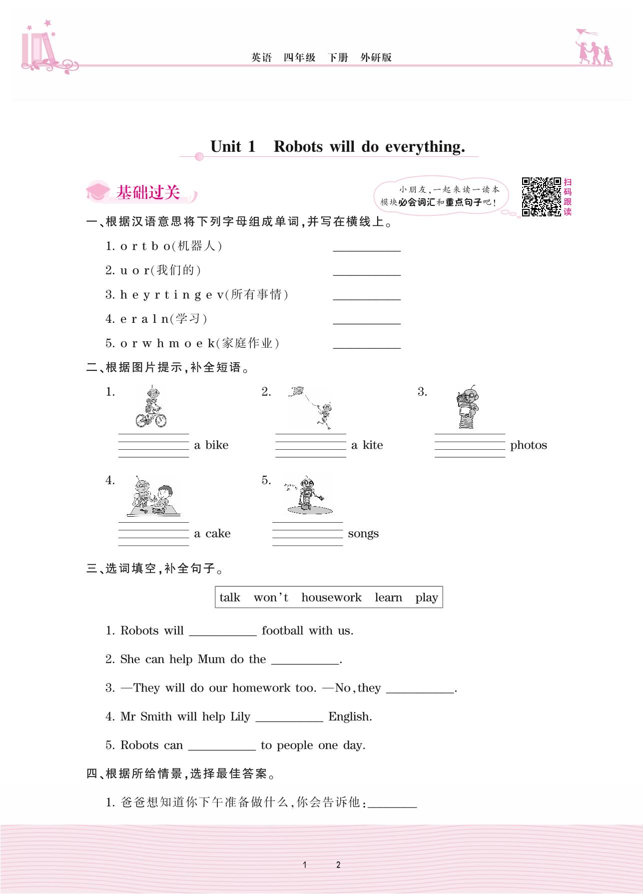 2021下册四年级英语外研版 Module 3—Unit 1 Robots will do everything.