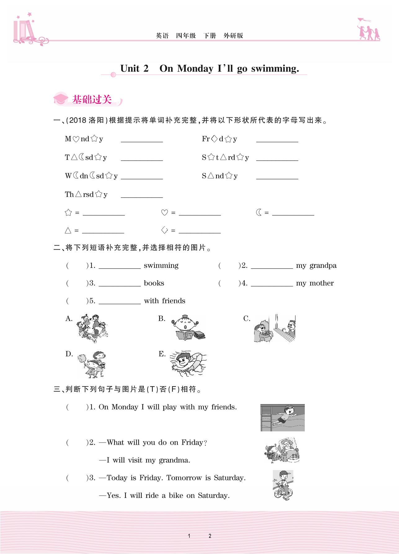 2021下册四年级英语外研版 Module 3—Unit 2 On Monday I’ll go swimming.