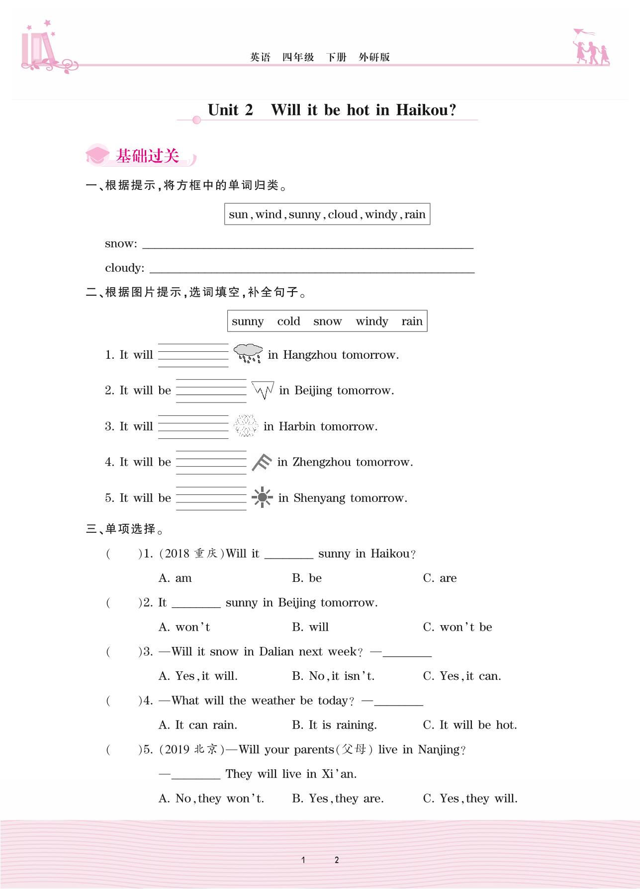 2021下册四年级英语外研版 Module 4—Unit 2 Will it be hot in Haikou?